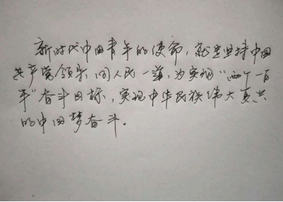 活动采取了软笔和硬笔两种形式,我系学生积极踊跃地参加,共收到七十余份作品。参赛作品都个性十足,抬手提笔,尽其所能地展示自身书法才能,或苍劲有力、或飘逸清秀,一笔一划间都彰显着汉字的独特魅力,充满了对习近平新时代中国特色社会主义思想的歌颂与弘扬。经系部严格筛选、反复斟酌,选出软笔和硬笔各五幅优秀作品,进行展示。