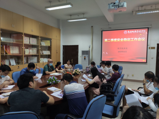 6月18日下午,医学技术系在系部会议室召开2020年第二季度安全稳定工作会议。会议由我系党总支负责人邱滚忠同志主持,翁绳和主任、魏碧娜副主任、党总支委员、各支部书记、各教研室主任、实训中心主任、办公室主任、辅导员参加此次会议。
