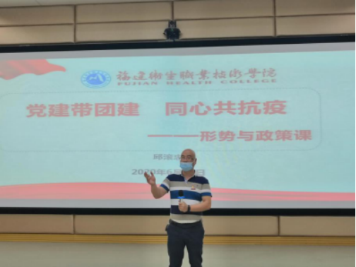 6月30日,医学技术系党总支负责人邱滚忠同志在实训楼演播室,与2018级团学干部召开团学干部座谈会,并讲授形势与政策课《党建带团建 同心共抗疫》。邱书记首先带大家简要回顾了疫情防控进展,深入阐述了我国能在此次疫情防控阻击战中取得阶段性胜利的原因。他还生动讲解了奔赴湖北前线和守护八闽大地的一批批优秀校友事迹,分享了系部师生师生同心战疫的有力行动,鼓励团学干部继续保持投身一线防疫志愿服务的热情,坚定理想信念、锤炼作风本领,在今后的实习岗位上追求上进、努力工作,提升为人民服务的专业本领,成为可堪大用、能负重任的社会栋梁之材。