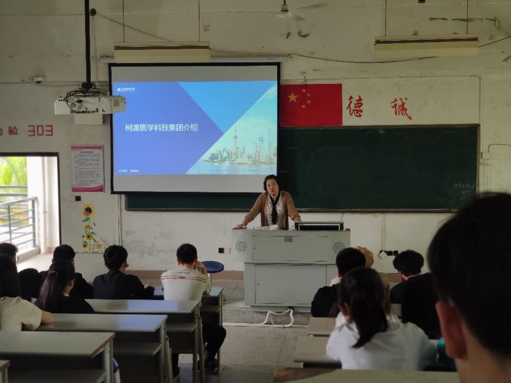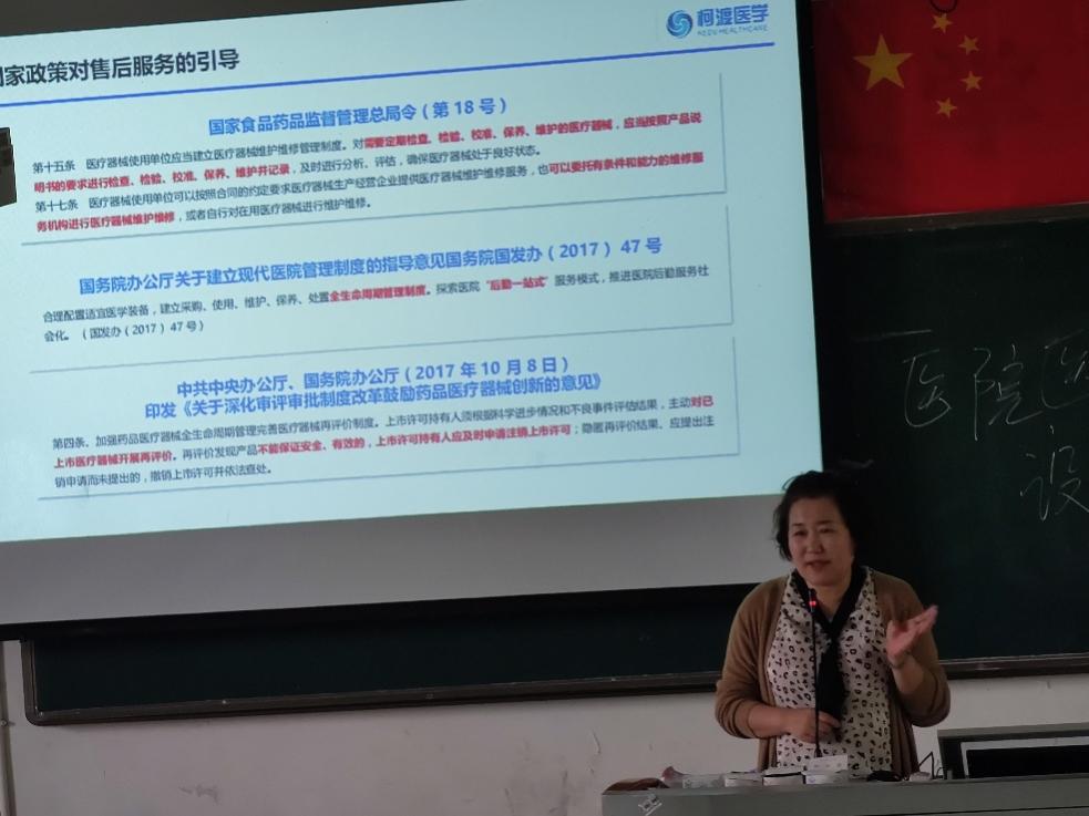 2021年4月1日,福建柯渡医学科技有限公司的姜颖经理(副教授)应邀来我院开设《医疗设备管理模式探究》专题讲座。讲座在医学技术系第二阶梯教室举行,医疗设备应用技术专业的100多名学生参加了本次讲座。