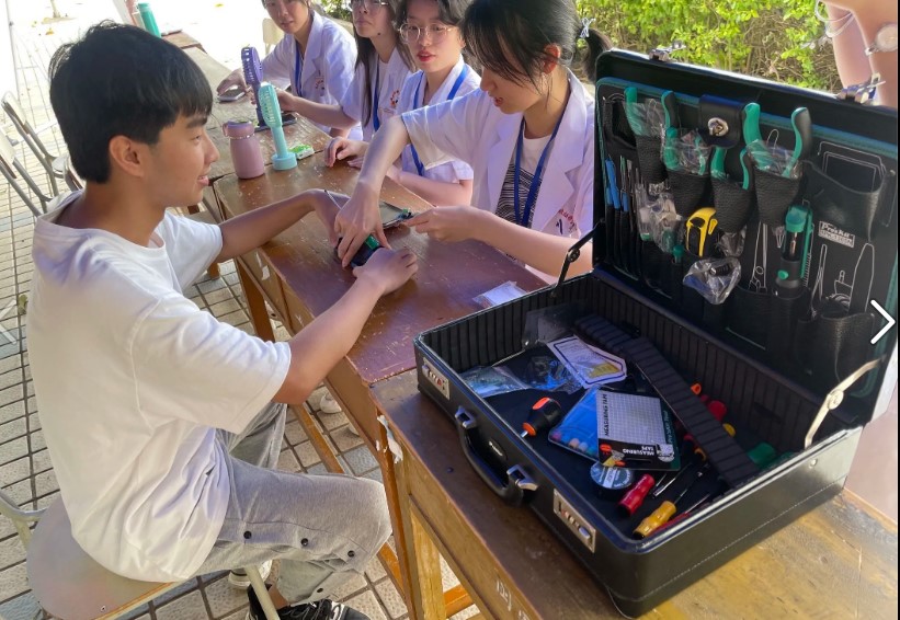 开展小型电器义务维修及电脑故障排除。5月20日在学院明湖餐厅门口开展小型电器义务维修及电脑故障排除活动,活动吸引了校内同学驻足观看,参与解决维修或者故障答疑的同学在本次活动中能力得到了提升。普及了小型家用电器维护保养与维修的常识和意义,提高学生利用专业知识践行为师生服务的认同感,践行医学生奉献精神和职教精神。