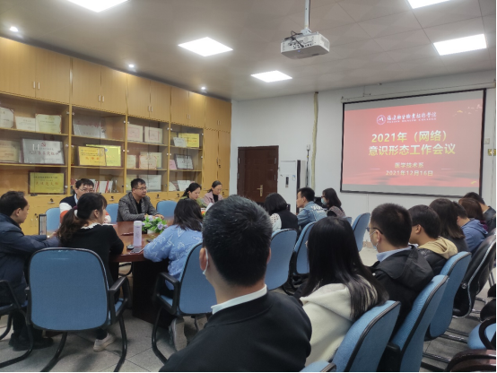 12月16日,医学技术系2021年(网络)意识形态工作会议在系部会议室召开。医学技术系意识形态工作领导小组成员、党支部书记、团总支书记、教研室主任、辅导员等参加会议,会议由系党总支书记陈俊颖主持。