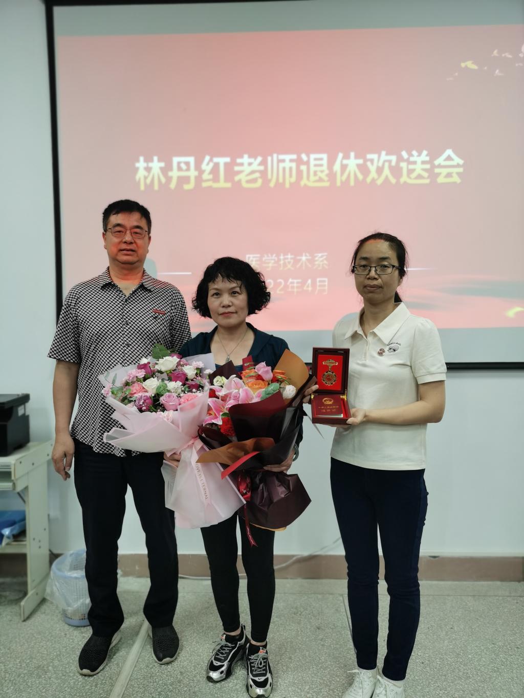 岁月如歌,情怀依旧。2022年4月28日医学技术系全体教职工齐聚301会议室为光荣退休的林丹红老师举行欢送会。