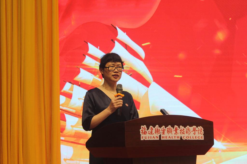 医学技术系临床检验教研室主任何旭春副教授作为教师代表发言,她希望毕业生们在社会大学里,完成从医学生向医务工作者的转换,迎接新的考验和挑战。