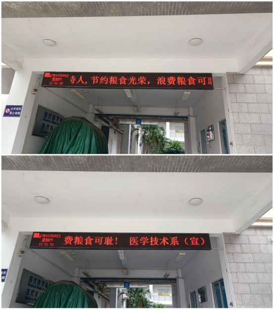 一是多载体营造良好宣传氛围。10月8日-10月18日,医学技术系组织开展了“2022年世界粮食日和全国粮食安全宣传周活动”系列活动,利用系部微信公众号、LED电子显示屏幕、视频讲解等载体,宣传粮食安全相关内容,普及粮食节约、营养健康知识,引导全系师生形成爱粮节粮的良好校园风气。