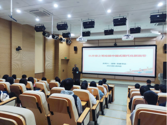 游锋书记从接续奋斗实现中国式现代化、科学把握中国式现代化的重要特征、以青春之力为中国式现代化着笔增色等三个方面,深入阐述中国现代化建设的伟大历程,详细剖析中国式现代化的特征。他亲切寄语同学们,要笃定信心跟党走、脚踏实地练本领、挺膺担当向未来。