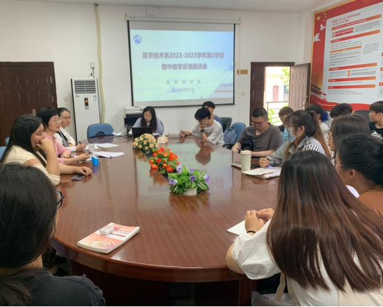 2023年4月17日中午,医学技术系在医技系301会议室召开了2022-2023学年第二学期期中教学座谈会,校督导李燕平老师、罗兰老师,医学技术系副主任周微琳老师、教学秘书陈烁老师以及各班学生代表参加会议。