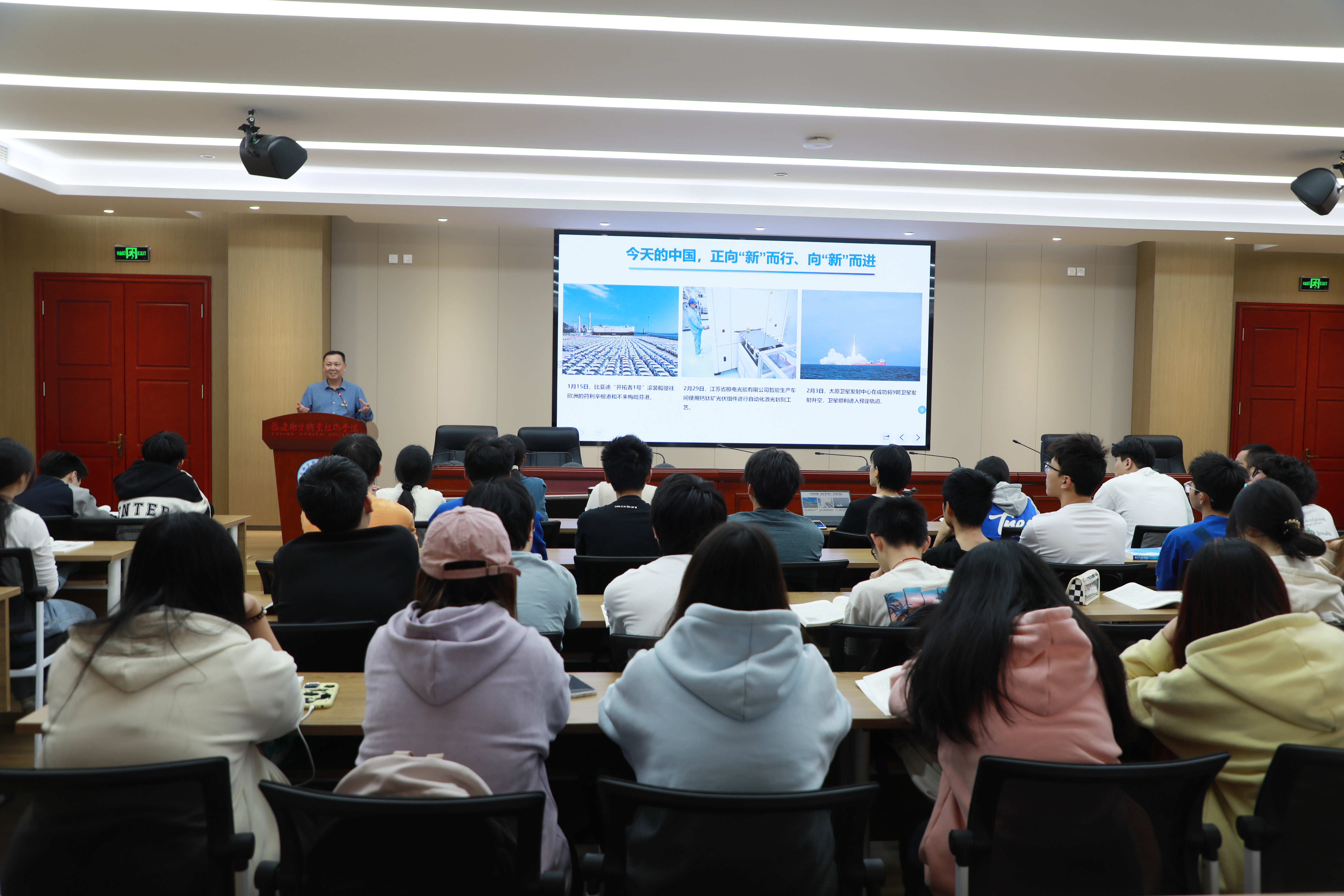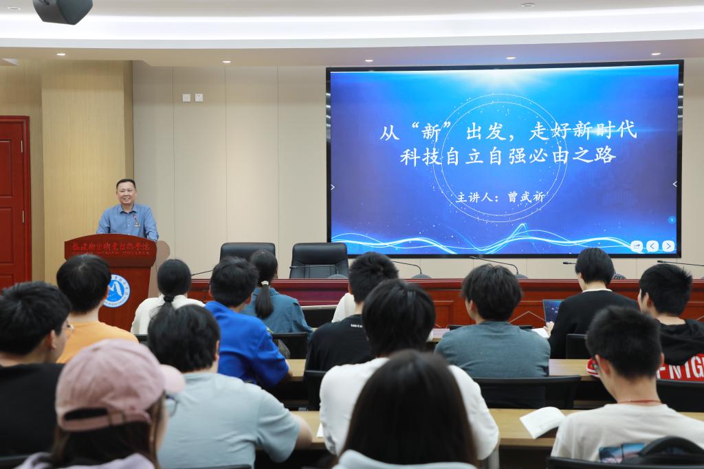 曾武祈从“战略博弈:世界科技竞争日趋激烈”“乘风破浪:我国科技机遇挑战共存”“勇立潮头:加快科技自立自强步伐”“凝‘青’聚力:彰显科技强国青春担当”等四个方面出发,深入分析当前世界的科技竞争趋势,结合丰富案例阐述我国科技发展的机遇和挑战。