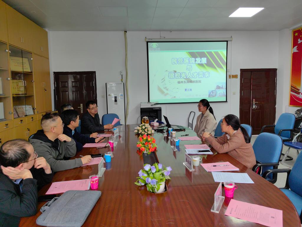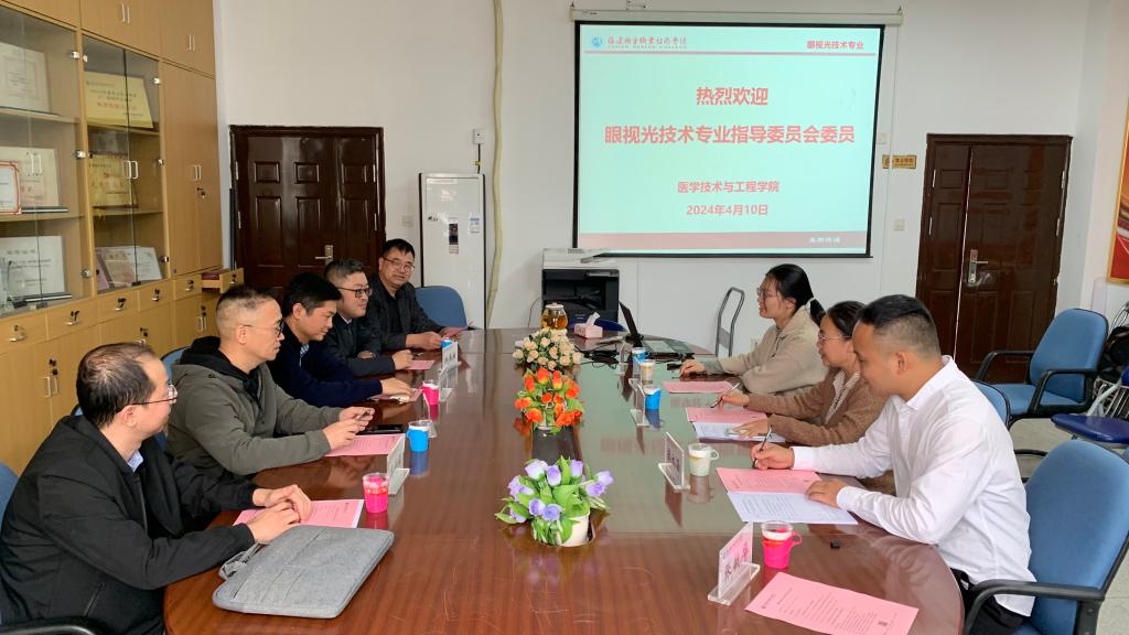 2024年度眼视光技术专业指导委员会于4月10日下午在医学技术与工程学院三楼会议室召开。专业指导委员会成员福州东南眼科医院副院长夏江胜,宝岛眼镜福建总经理黄志华,福建省级机关医院门诊部主任林泰南,福州儿童医院眼科主任高守铭,开云在线登录app入口眼视光技术专业带头人王珊珊及其他眼视光专业教师出席并参加了本次会议。