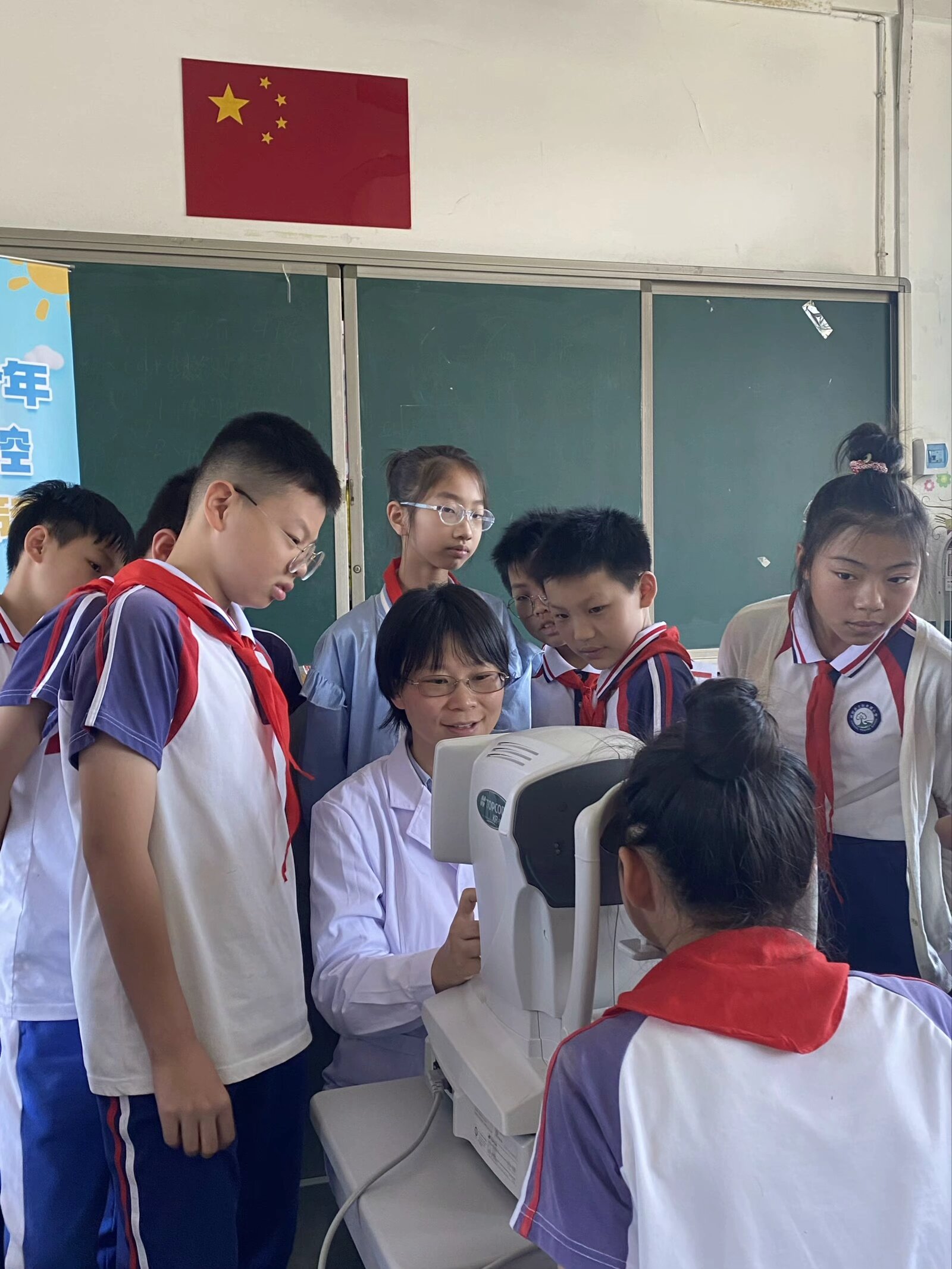 筛查过程中,专业老师生动形象地向学生和老师们普及了近视防控的基本知识。内容包括近视的成因、危害以及日常预防措施等。针对目前校园中常见的近视问题,提出了科学合理的解决方案。