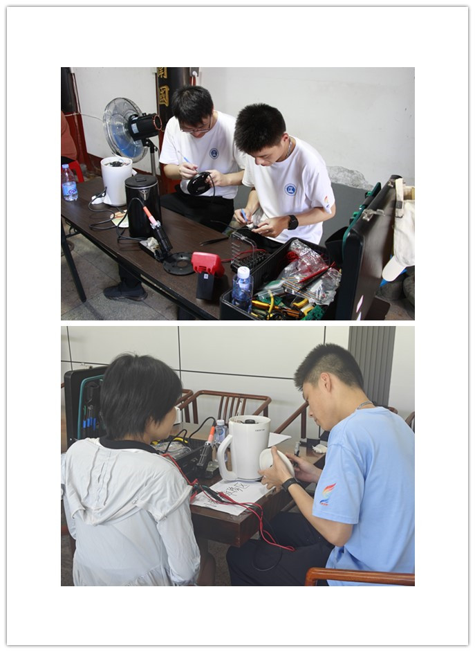 为将所学知识转化为实践技能服务群众,实践队为当地村民进行小家电的维修。队员们携带电烙铁、吸锡器、电容感应测量仪等专业仪器,在专业老师的指导下,让存在故障的小家电“重获新生”,获得了村民的一致好评。