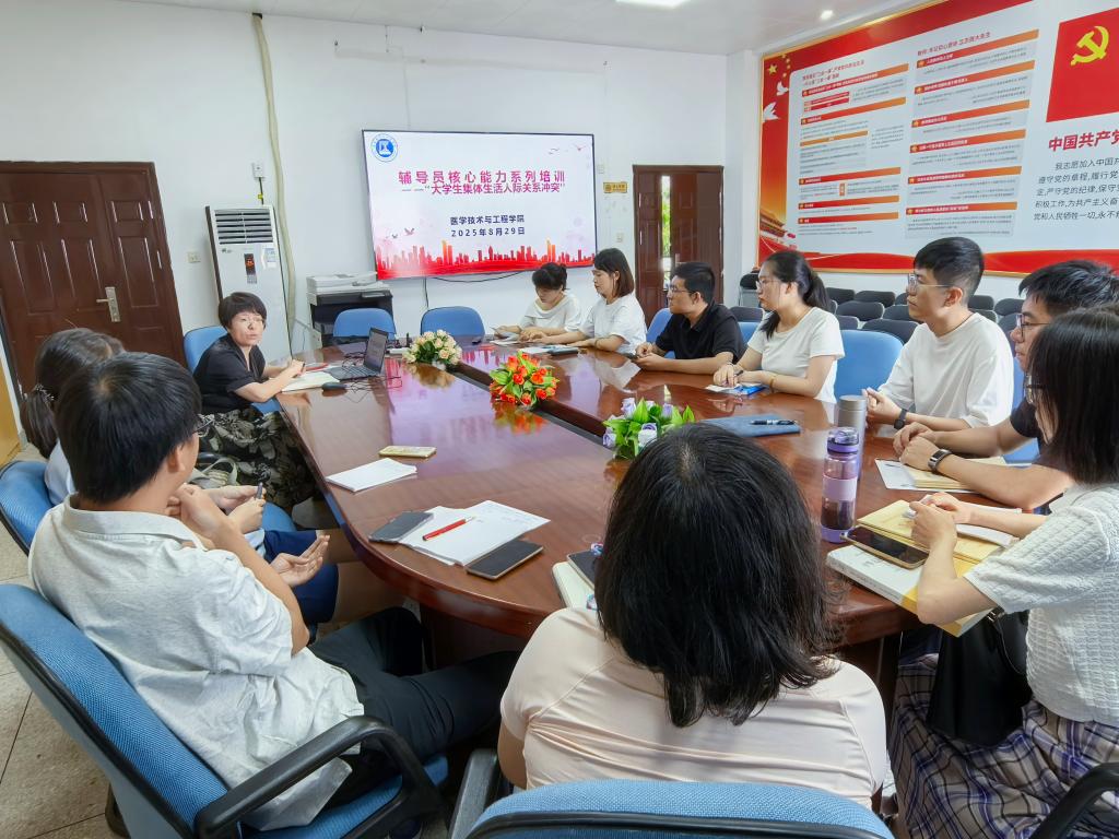 为全面贯彻习近平新时代中国特色社会主义思想和全国高校思想政治工作会议精神,进一步落实《全面加强新时代高校辅导员队伍建设行动方案》文件要求,加强我院辅导员队伍专业化、职业化建设,提升辅导员的核心能力,医学技术与工程学院按照辅导员核心能力提升内训行动计划方案,于8月29日举办辅导员核心能力培训第三课。全体专兼职辅导员参加了此次培训。