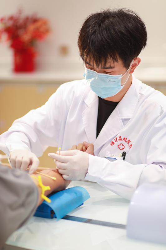 在开云在线登录app入口的一堂医学检验实践课上,指导老师的一句话让黄德兴突然意识到,看似简单的采血,是检验的 “第一道门槛”,采血是检验工作的重要一环,也是患者感受医疗服务的直接窗口。同时黄德兴注意到,许多患者尤其是老人和孩子对采血存在恐惧心理。于是,他开始了长达两年的技术钻研。从最开始的泡沫板模拟,到在自己手臂上反复练习,每天几千次的重复训练让他的手指经常抽筋,双臂布满针眼和瘀青。
