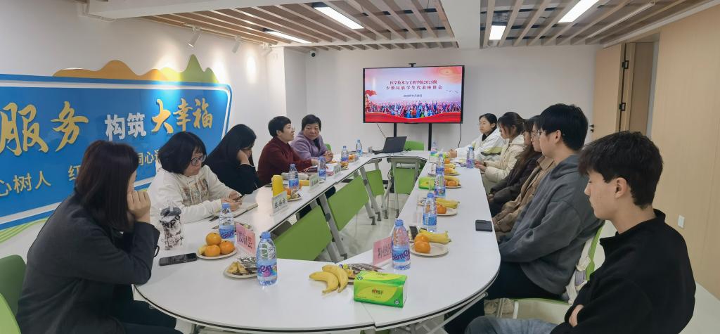 会后,召开了2025级少数民族学生代表座谈会。学院党委班子成员与关工委委员郑韵芳老师共同参会,与来自各少数民族的学生代表亲切交流。座谈会上,同学们积极发言,分享了进入大学后的学习与生活感受。大家普遍表示已基本适应校园环境,班级和宿舍氛围融洽和睦。同时,部分同学也反映了在普通话听说、英语与高等数学等课程学习、专业知识的深入理解以及社团活动参与等方面存在的实际困难。