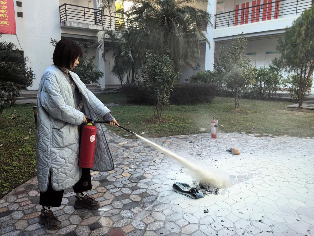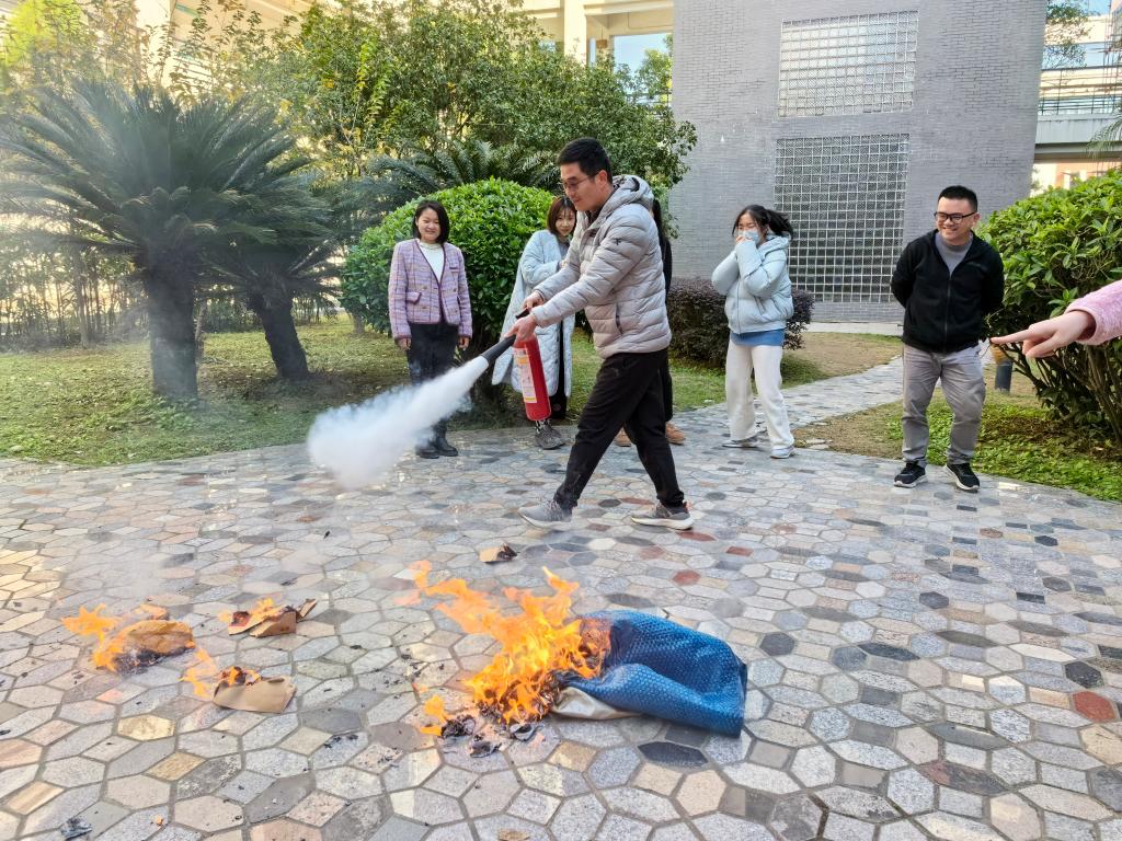 讲座结束后,吴香书老师带领2023年新入职的4位教师,以及2022年入职的3位教师开展灭火器和消防栓的使用培训。