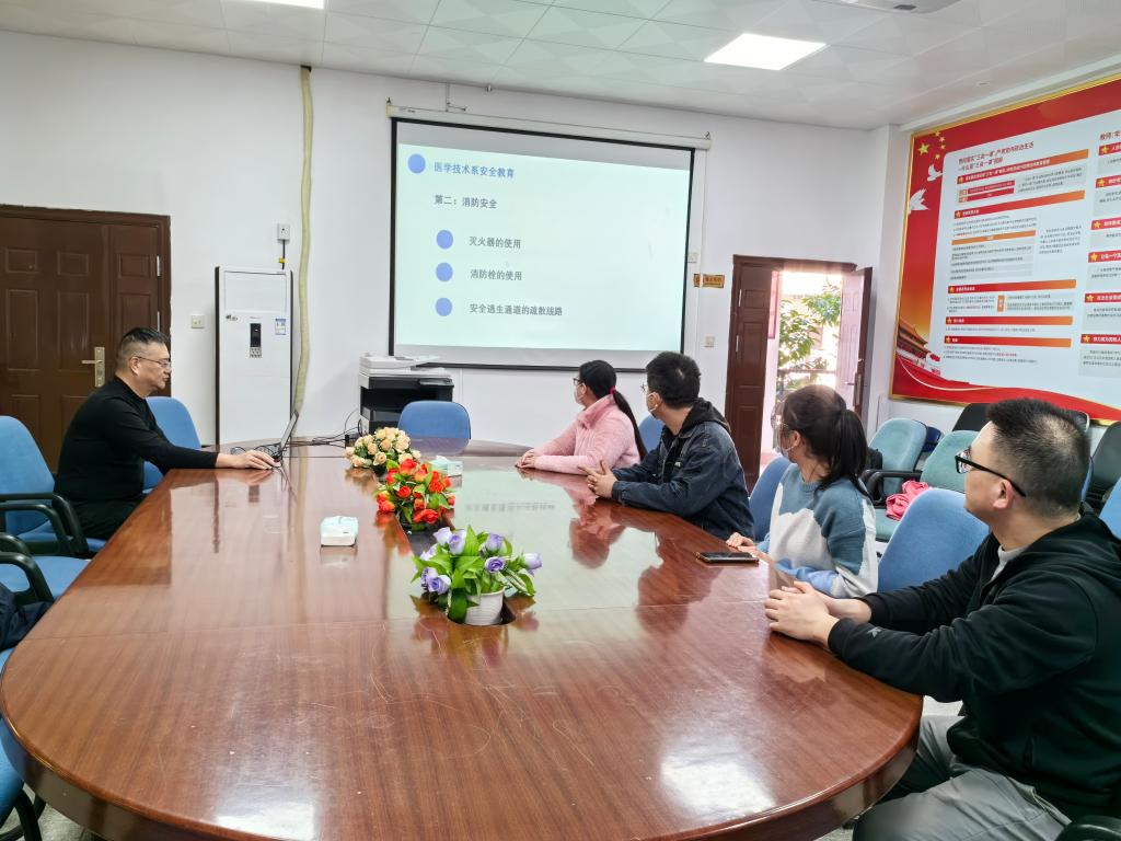 为增强2023年新入职教师的安全责任意识,医学技术系于2023年11月22日在会议室,由系安全员吴香书老师为4位新教师开设医学技术系安全教育讲座。讲座从安全意识、消防安全、实训室准入等三个方面对新教师进行培训。