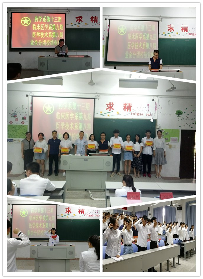 2018年5月2日,由药学系、临床系、医学技术系联办的业余分团校结业典礼在临床系一阶举行。莅临本次大会的老师分别是系团总支书记黄嵩梅、副书记尹德爱、临床医学系团总支书记叶家涛、副书记谢林辉以及医学技术系团总支书记黄玲云、副书记曾庆才。结业典礼由杨庆玲同学主持。