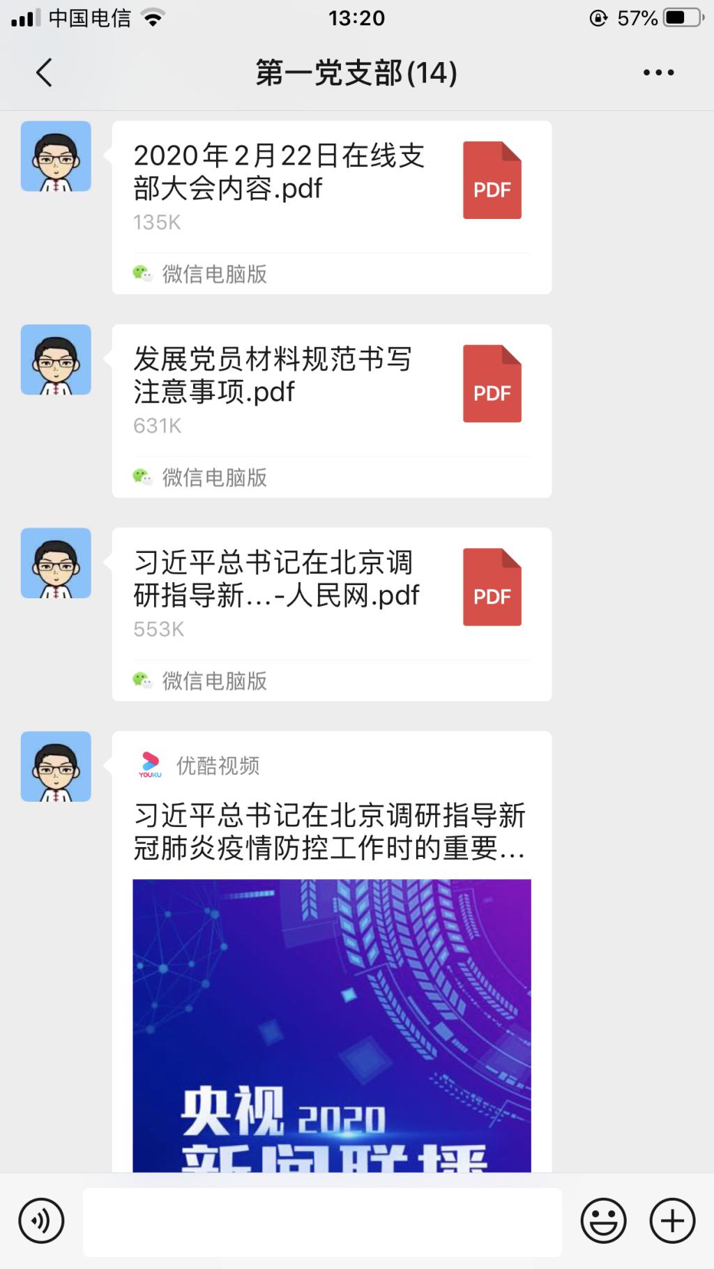 2020年2月22日,药学系第一党支部通过线上开展新冠肺炎疫情防控学习主题党日活动,学习习近平总书记在北京调研指导新冠肺炎疫情防控工作重要讲话精神。