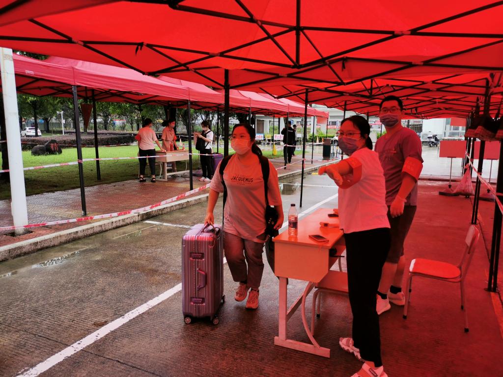 这一天,是药学系全体教师和五个18级、16级五年专辅导员忙碌、充实、幸福的一天,忙碌在整个校园不停穿梭、充实在服务学生井然有序、幸福在隔着手机和电脑屏幕相见四个月的学生又站在了面前。前往火车站抢见学生第一面的专业老师们、为学生送去蚊香的陈翰、排解发热学生焦虑直到深夜的林舒畅、被许久未见的学生团团围住的郑卫敏、深入宿舍关心学生“假期”生活的吴建民,还有高继璐的那句“好久不见”。有药学系教师和辅导员陪伴的日子,哪怕大雨漂泊,依然云销雨霁。