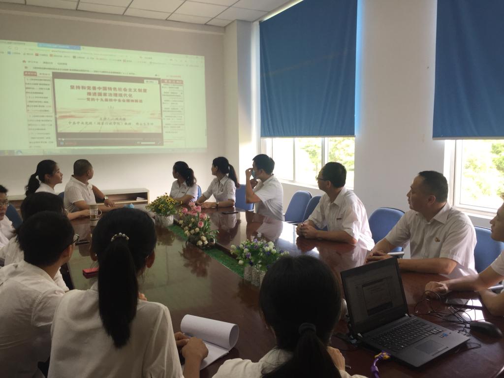 与会人员利用四个半天的时间,通过干部网络学习平台,集中观看专题培训视频,学习了《开辟“中国之治”新境界——党的十九届四中全会总体精神解读(上、中、下)》、《关于国家治理现代化的几个问题——学习党的十九届四中全会精神(上、下》)、《坚持和完善社会主义基本经济制度——党的十九届四中全会精神学习体会(上、下)》、《坚持和完善中国特色社会主义制度 推进国家治理现代化——党的十九届四中全会精神解读(上、下)》等内容。专题培训会上,与会人员结合个人工作实际进行研讨交流,分享个人学习体会。