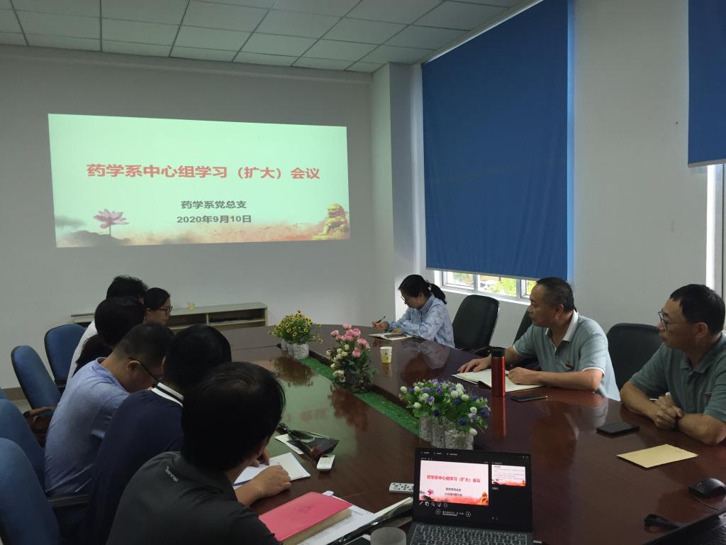 2020910日,药学系党总支在系部会议室召开中心组学习(扩大)会议,会议由药学系党总支书记郑力宏主持。