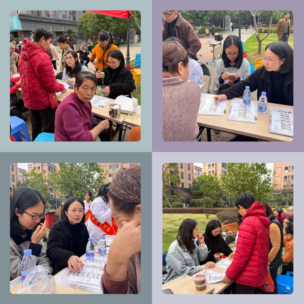 活动现场暖意融融,志愿服务专区有序铺开。师生党员在为社区老人送上拗九粥的同时,发挥专业所长,积极为前来咨询的居民提供免费血糖、血压检测服务,细致记录健康数据,针对老年群体常见的慢性病防控、用药安全等问题耐心答疑。党员志愿者们用通俗易懂的语言拆解专业健康知识,让居民在家门口就能享受到优质便捷的医疗服务。