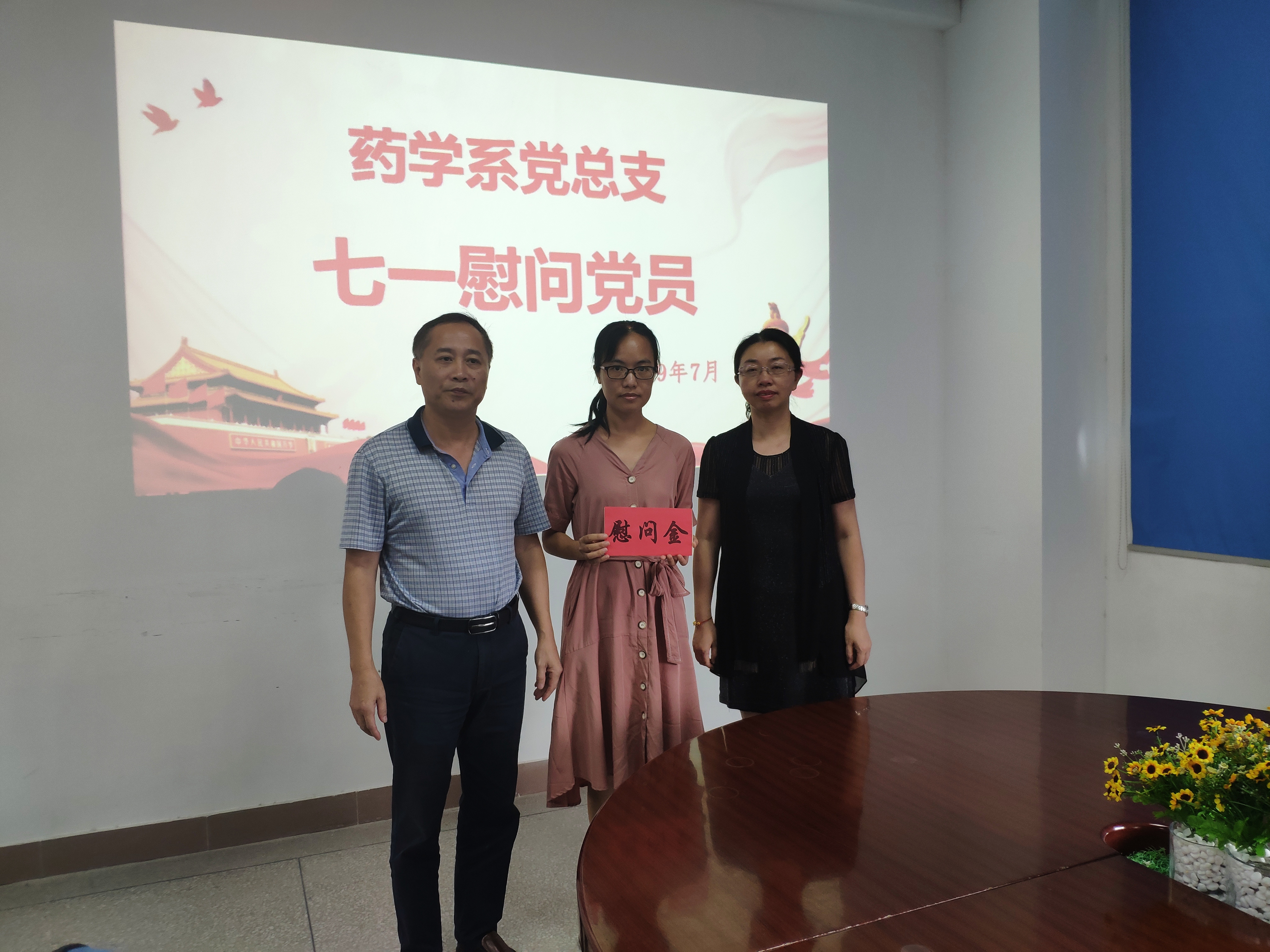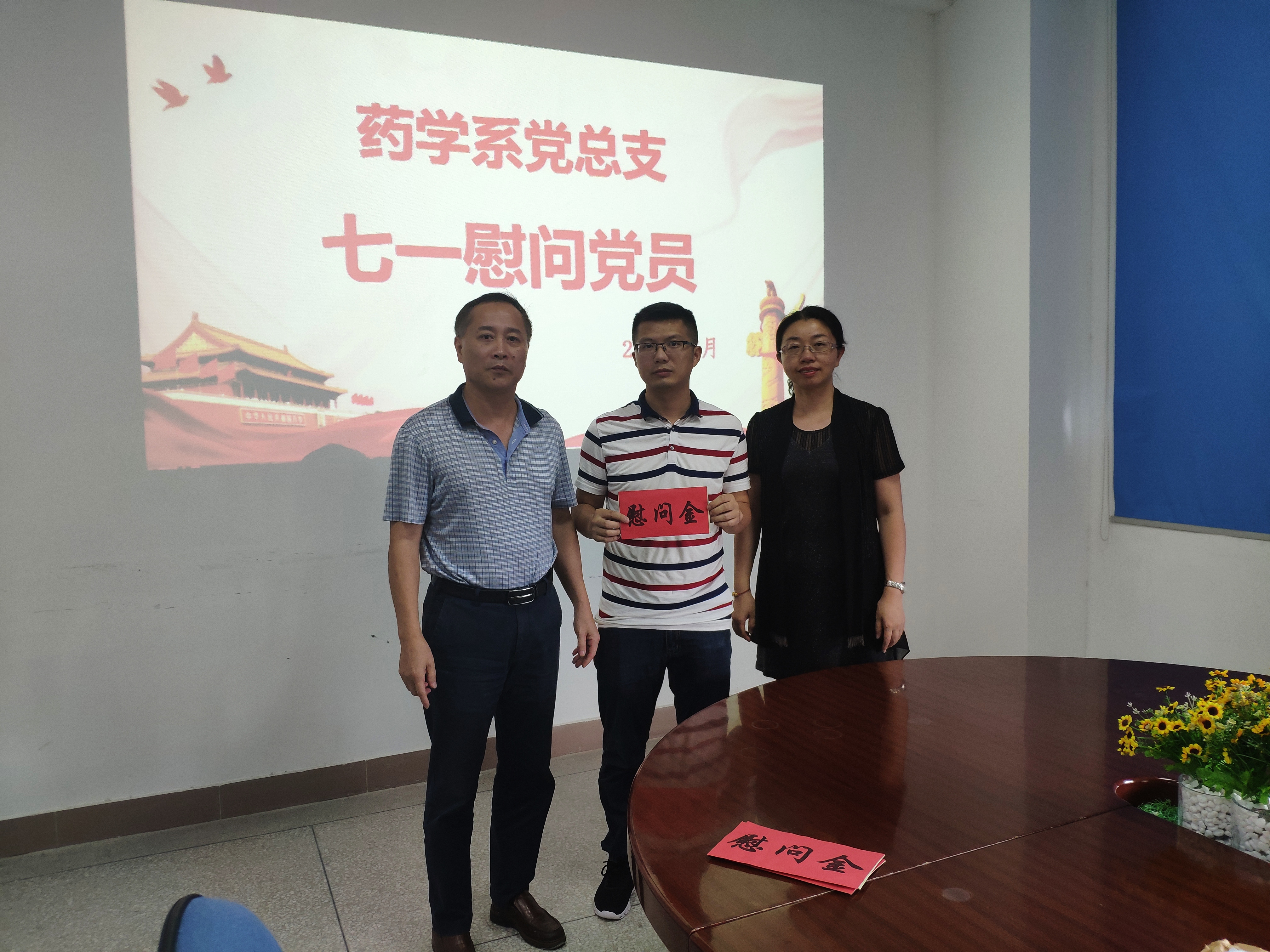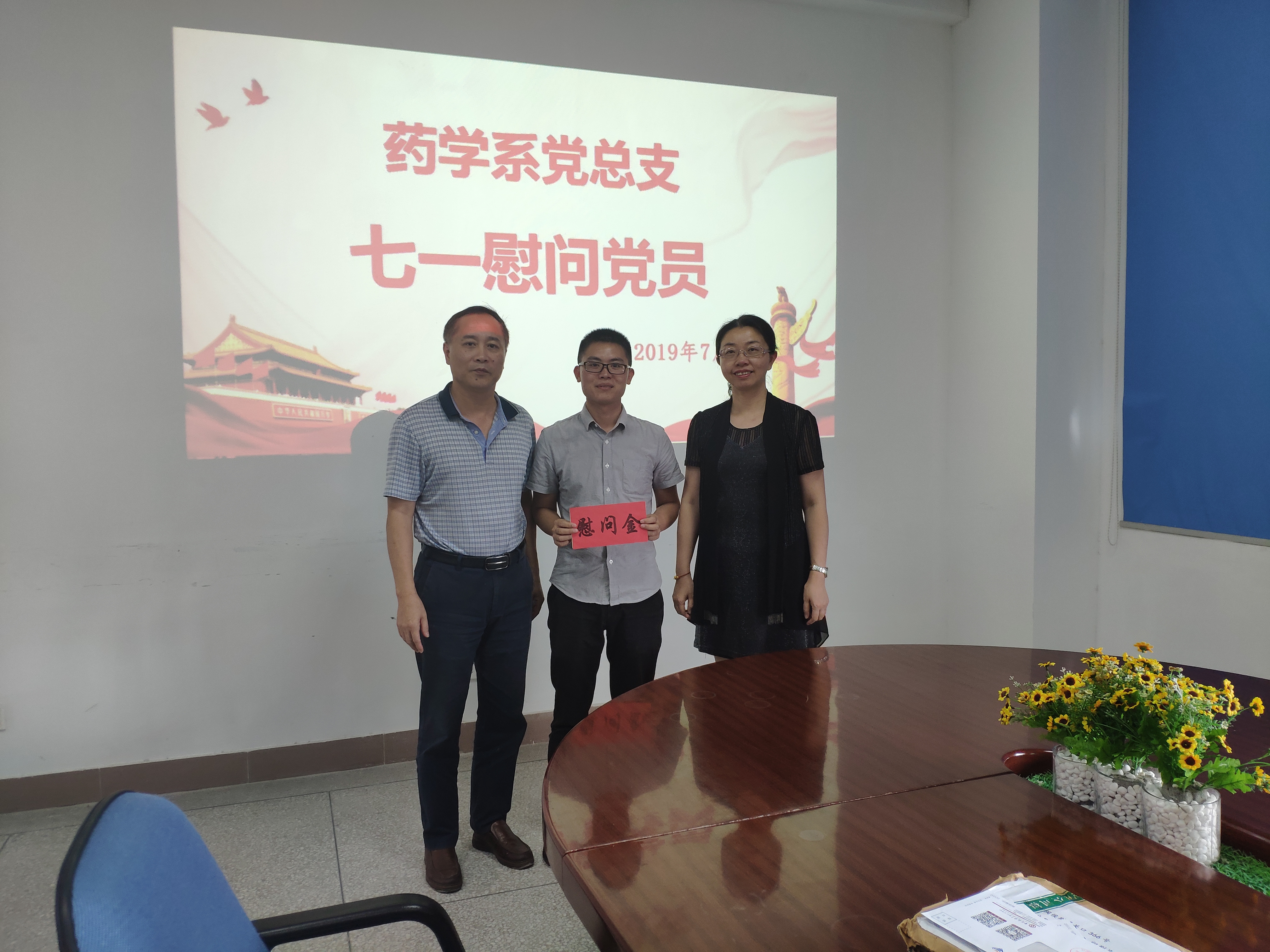 在欢庆中国共产党成立98周年之际,为弘扬党的光荣传统和优良作风,充分体现党组织对党员的关心与爱护,药学系党总支开展七一慰问活动,看望困难党员,为他们送去慰问金及节日的问候。