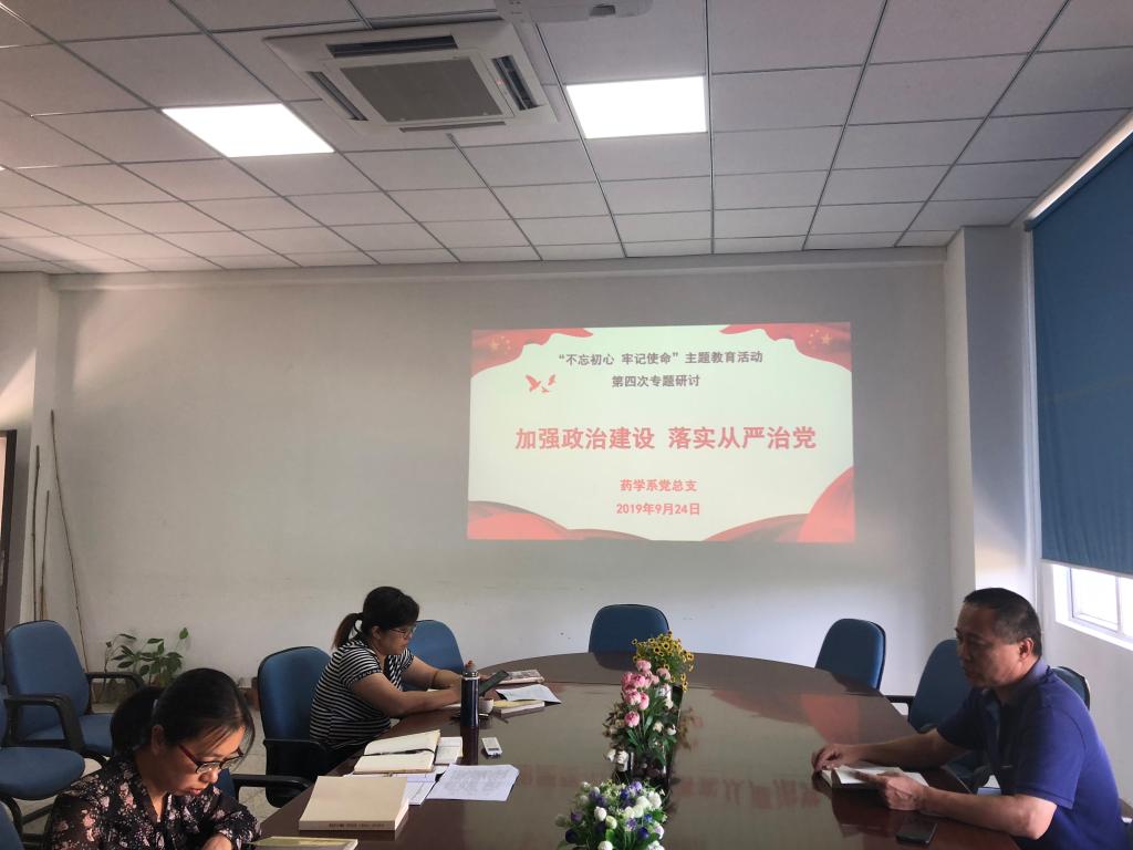 9月24日上午,药学系党总支在系部会议室开展主题为“加强政治建设,落实全面从严治党”专题学习研讨交流会。药学系党总支书记郑力宏主持会议,党总支副书记赖文金、系副主任潘雪丰参加了本次研讨交流会。