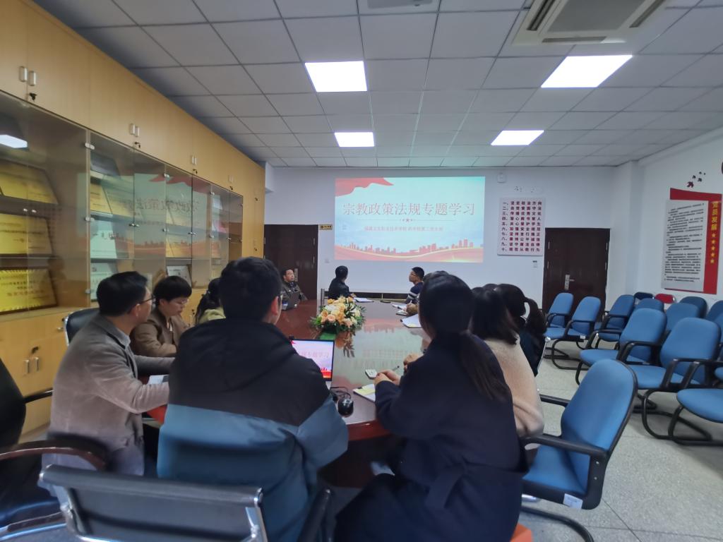 为深入学习贯彻党的二十大精神,加强民族宗教政策法规学习宣传,2023年11月15日,药学院第二党支部在药学院会议室开展了《宗教政策知识宣传》的专题学习。此次专题学习由支部副书记刘全裕主持。