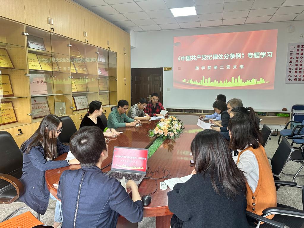 为深入学习贯彻习近平总书记关于党纪学习教育的重要讲话和重要指示精神,深刻认识开展党纪学习教育的重大意义,准确把握目标要求,4月25日下午,药学院第二党支部在药学院会议室开展《中国共产党纪律处分条例》(以下简称《条例》)的专题学习会。本次会议由党支部书记刘丹丹主持,全体教师党员积极参与。
