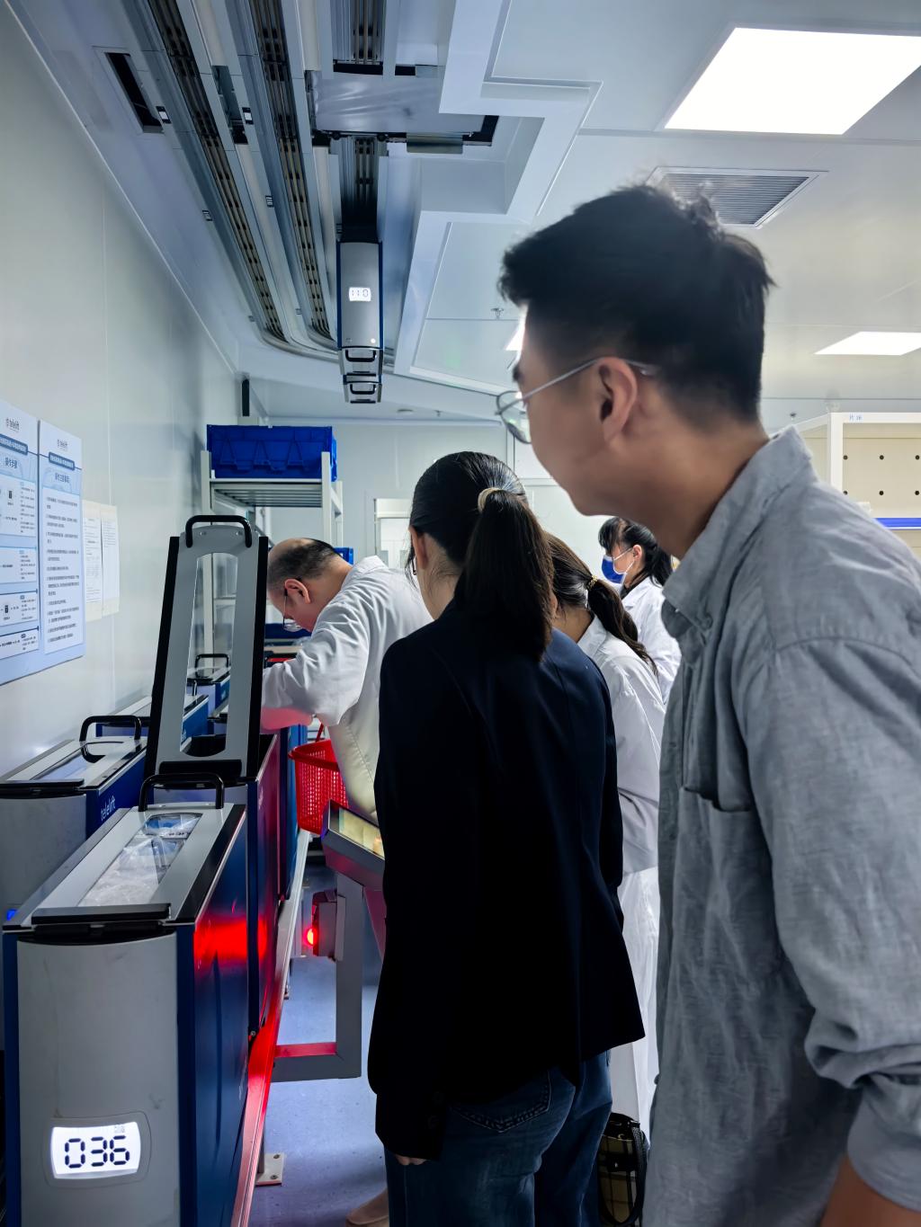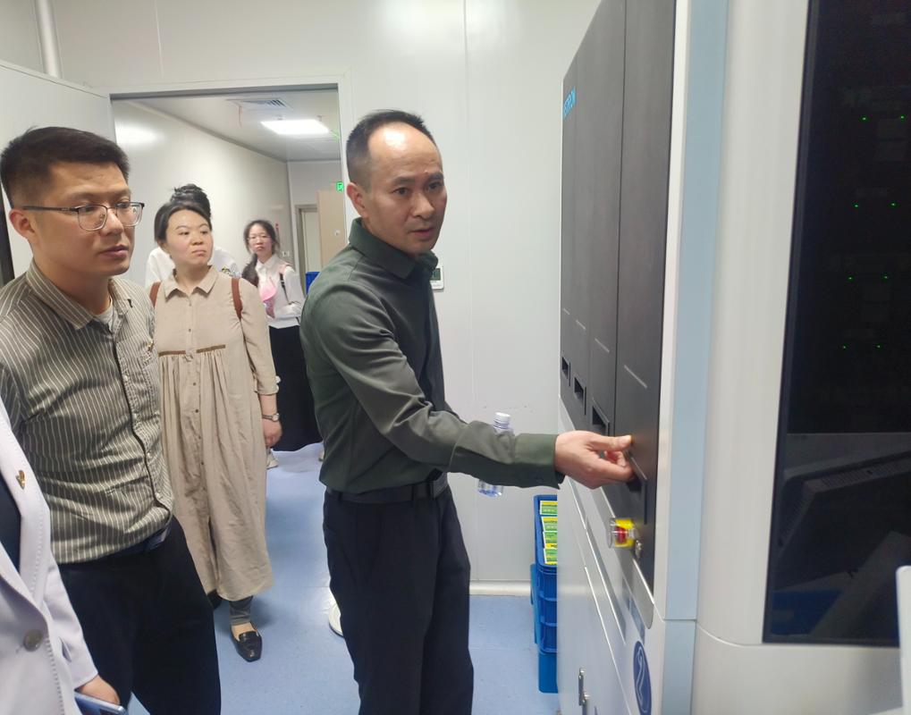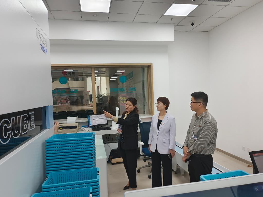 座谈会后,药学院一行在俞晓玲书记的引导下,参观了智慧药房、临床药学、精准药学平台等关键功能区。在智慧药房参观环节,俞晓玲书记详细介绍了“库发一体”智慧药房,实现药品从入库到分发全流程自动化、智慧化,展示了智能化药房的高效运作,让教师们直观感受到数字化转型对药学服务的革新作用。刘丹丹书记表示,将结合调研成果优化教学内容,培养适应智慧医疗需求的复合型人才。