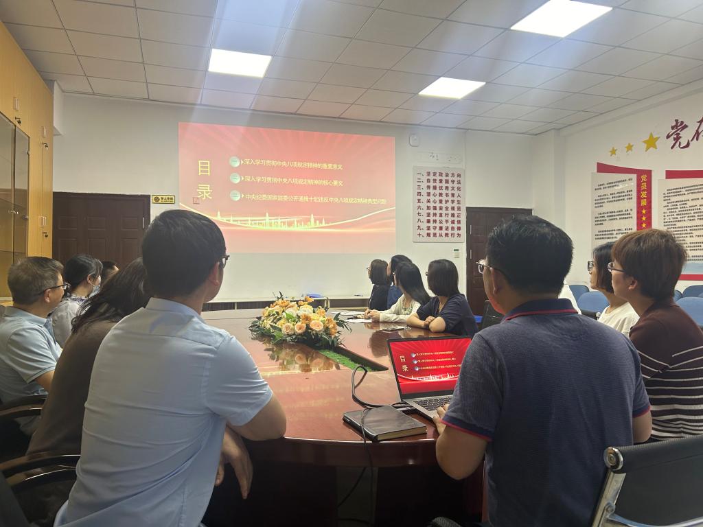 6月5日,药学院第二党支部在药学院会议室召开“推进自我革命、筑牢拒腐防变防线——深入贯彻中央八项规定精神学习教育”主题党课,由药学院院长李泳宁主讲,党支部书记刘丹丹同志主持,支部教师党员参加。