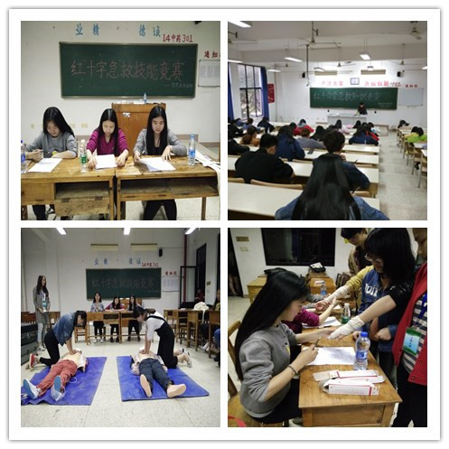 为了使学生了解基本急救知识,学习并掌握基本的急救技能,锻炼临场急救能力,增强学生自救互救的能力,药学系分别于2016年4月11日及4月12日晚在教学楼214举办“红十字会急救知识竞赛”及“红十字会急救技能大赛”。 本次急救知识竞赛以笔试的形式进行,主要内容包括基本逃生知识及自救的方法和技能。参赛同学需在规定时间内交卷。在整个参赛过程中,同学们都自觉遵守考场纪律,不交头接耳,专心答好每一道题。最终15药学306班的陈素娴凭借最高分荣获第一。 在急救技能大赛中,选手们根据自己所学知识,通过模拟伤害发生场景展示各自的包扎、心肺复苏等急救技能,为在场观众展示了他们扎实的急救技能。将应急救护和生活中的情景相联系,不仅丰富了比赛内容,也考验了参赛者的综合能力。最后15经管307班刘晓玲同学以熟练的急救技能荣获一等奖。 这次比赛,不仅弘扬了“人道、博爱、奉献”的红十字会精神,也让急救知识深入人心。同时以上成绩优秀的同学将代表我系参加院部比赛。