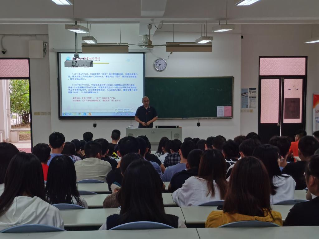 葛能杰围绕疫情防控和意识形态领域中常见的安全问题、隐患,向同学们展示了一个个鲜活的安全事故案例,见之于未萌、防之于未然。