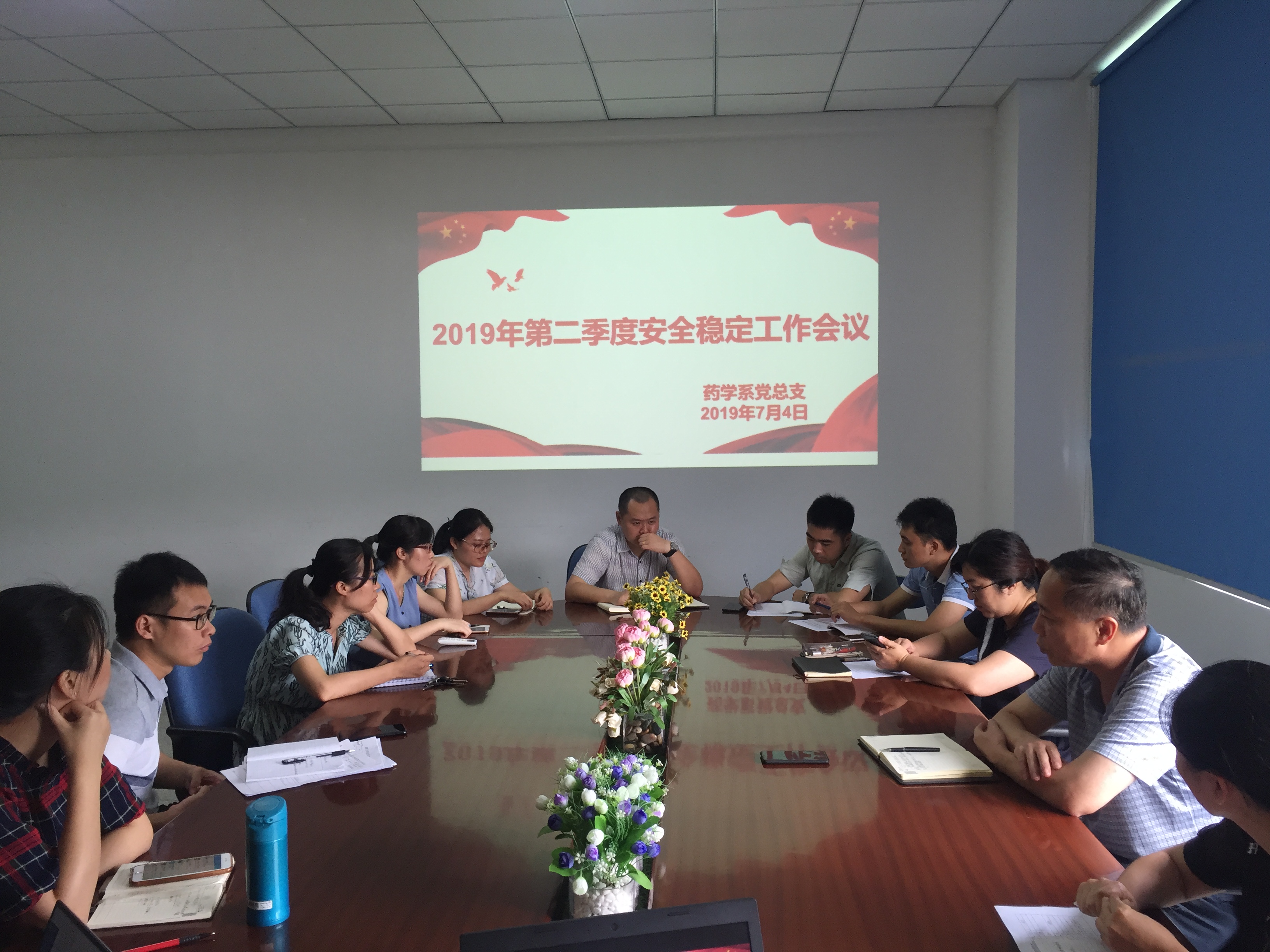 2019年7月4日,药学系于系部会议室召开2019年第二季度安全稳定工作会议,会议由郑力宏书记主持,系总支委员、实训中心主任、全体辅导员到场参会。