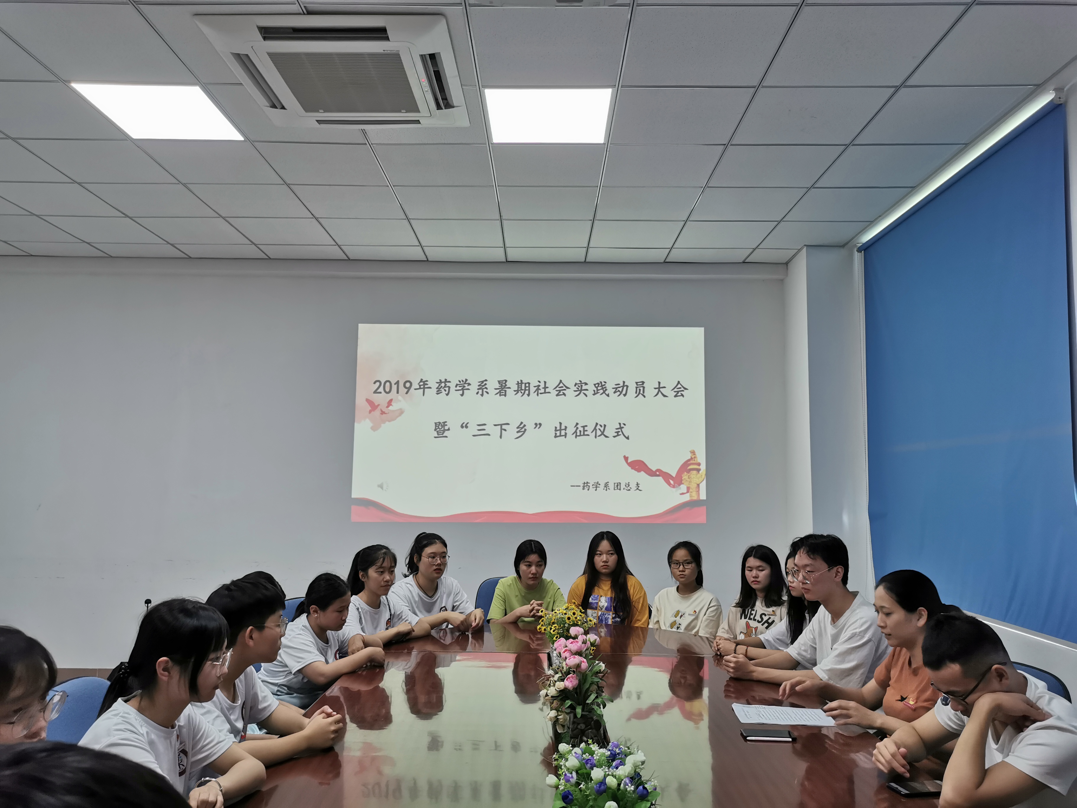 月5日下午,我系于系部207会议室举行药学系2019年暑期“三下乡”社会实践出征仪式。出席本次活动的人员有党总支陈洁副书记、团总支胡丹副书记和郑卫敏副书记以及参与本次“三下乡”的学生志愿者。
