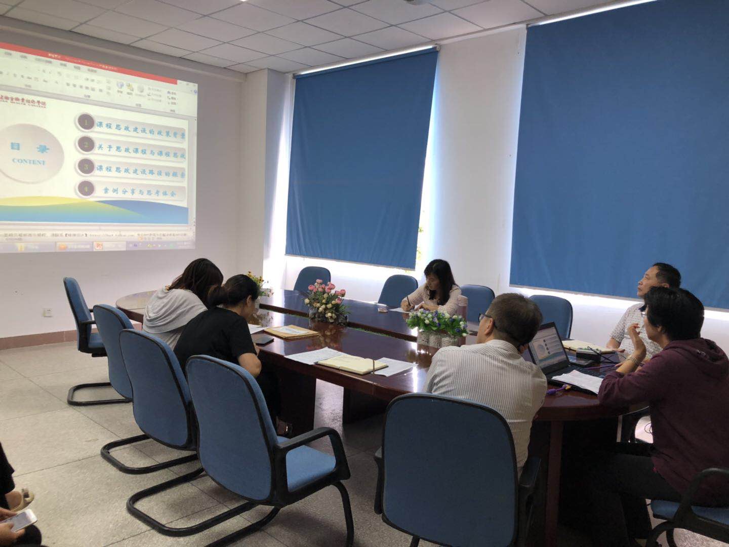 会上,郑力宏书记强调了“课程思政”建设的重要性,希望各位老师认真学习。马克思主义学院陈洪月老师介绍了 “课程思政”建设的基本要素。并列举具体案例,说明挖掘提炼各类课程的思政要素和德育功能,为教师开展课程思政提供思路。