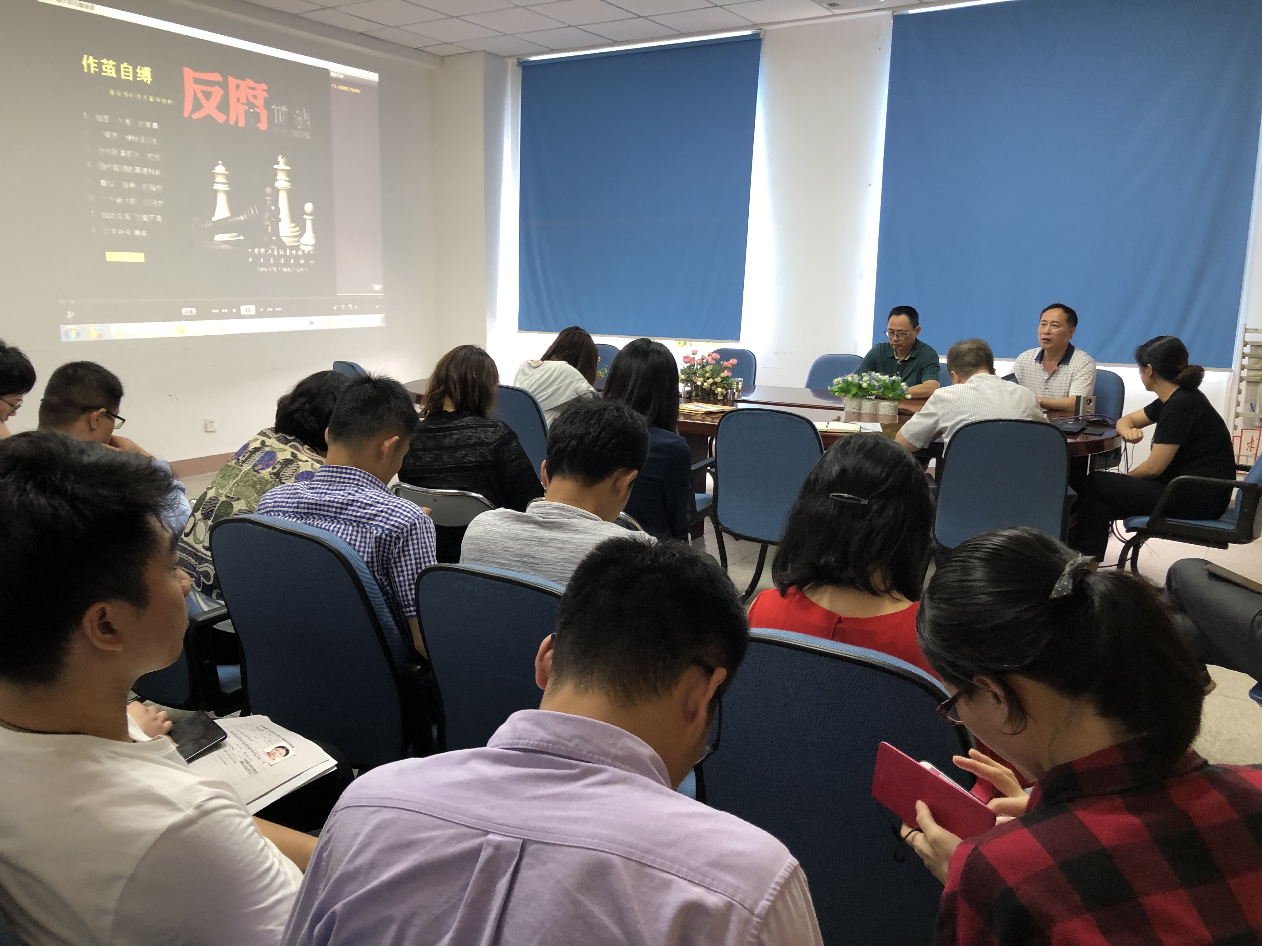 为切实贯彻十九届中央纪委三次全会、省纪委十届三次全会精神和教育部及全省教育系统全面从严治党工作视频会议部署,进一步加强党风廉政建设,引导广大党员干部知敬畏、存戒惧、守底线,不断增强党员干部廉洁自律和拒腐防变意识,大力营造风清气正的良好政治生态,5月16日药学系于系部会议室组织全体教职工观看反腐倡廉警示教育片。