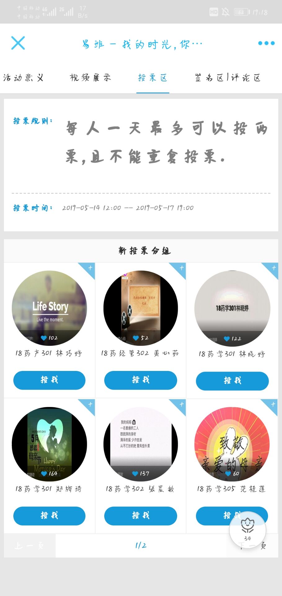 此次活动面向药学系全体学生,于5月2日开始征集视频,要求参赛人员通过简单的影像记录,展现生活中平凡而伟大的母亲,作品积极向上,表达出浓浓母爱。此次比赛共征集到17份作品,初赛筛选出十份作品进入易班APP进行为期3天的投票。最终,18中药302班林殊涵同学获得一等奖;18药经管302班黄心茹同学、18药产301班林巧婷同学获得二等奖;18药学301班郑旖琦同学、18药学302班张晨敏同学、18药学305班范桂莲同学获得三等奖。