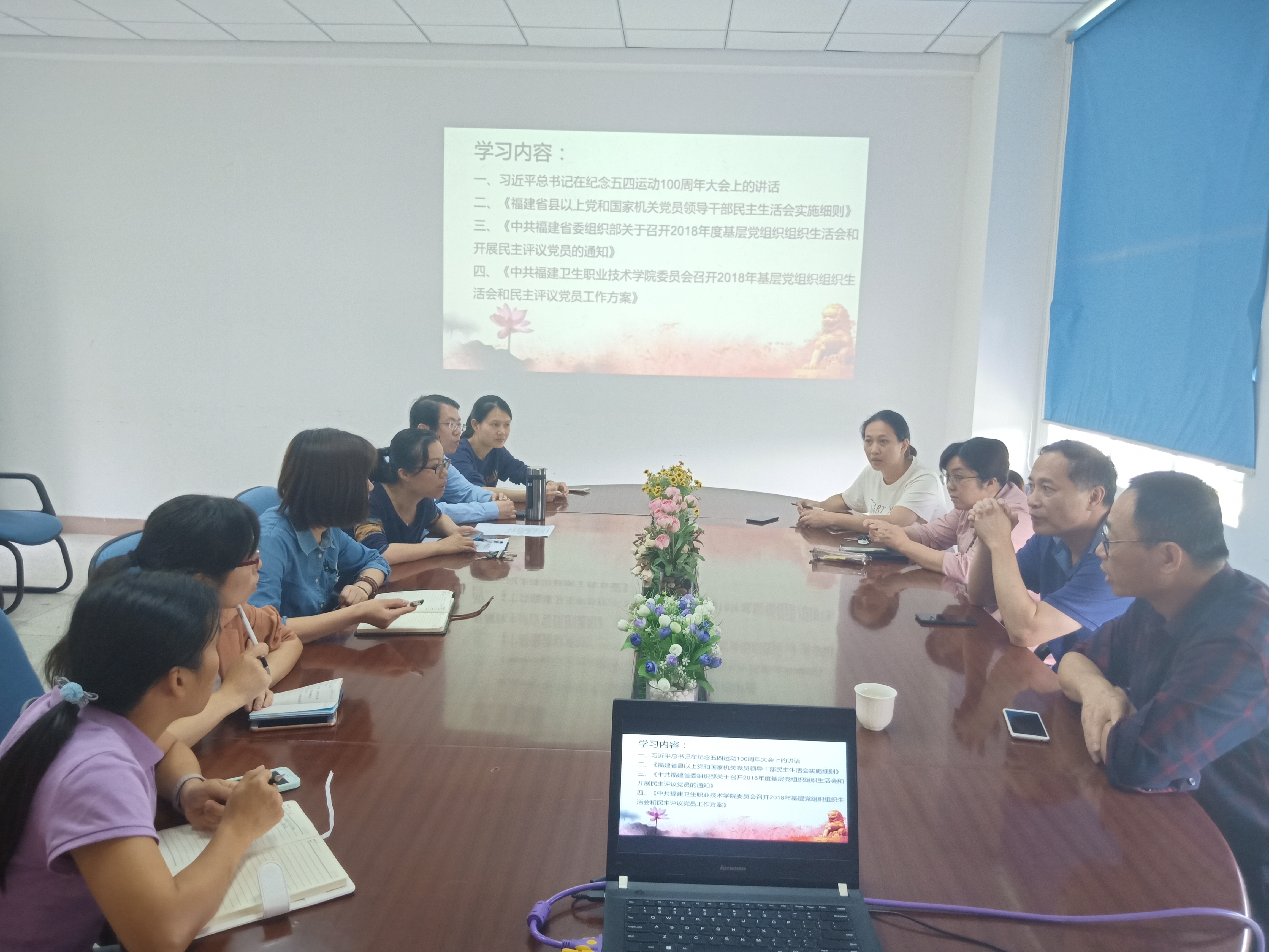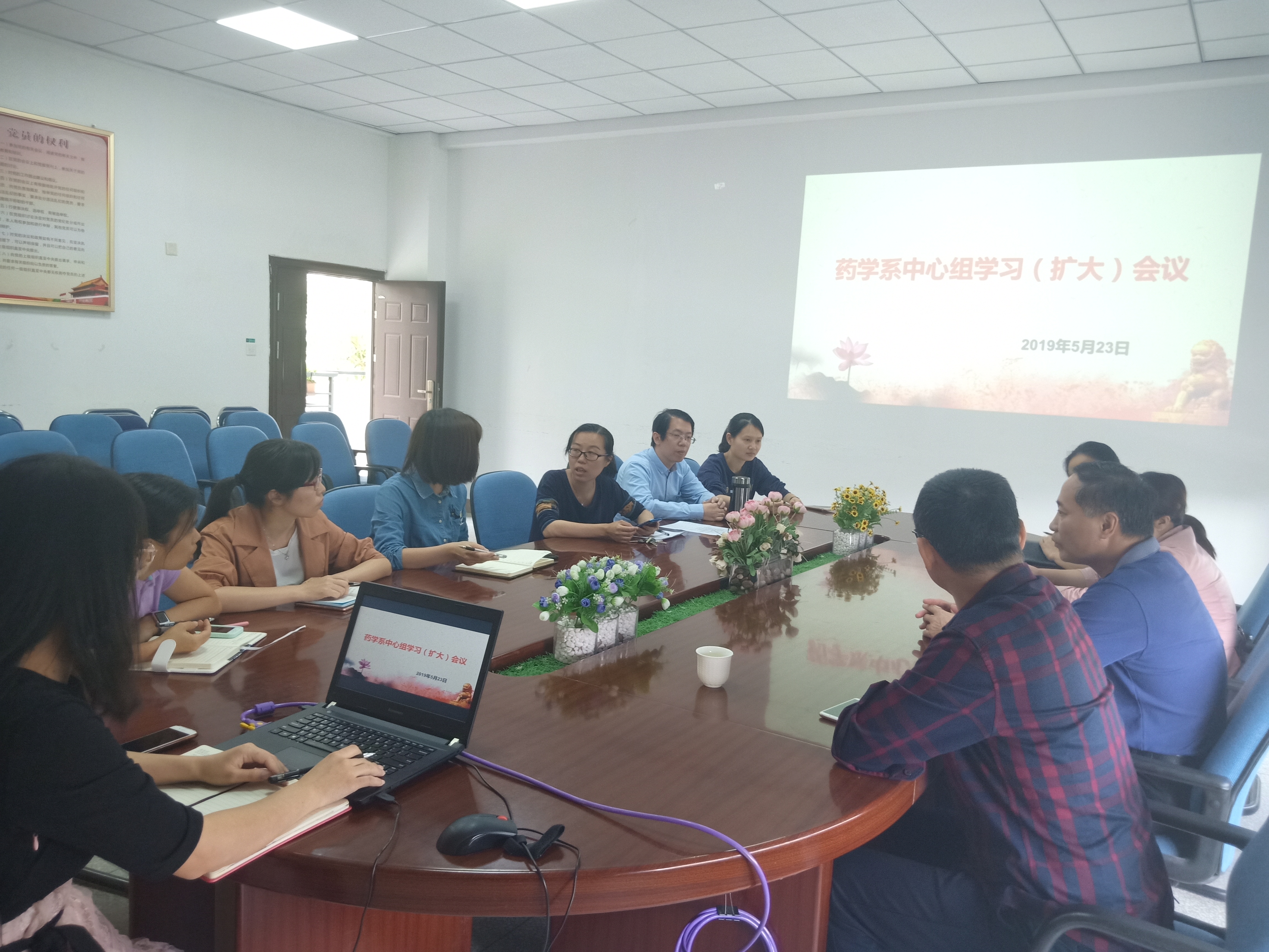 5月23日,药学系在系部会议室召开中心组学习(扩大)会议,传达《习近平总书记在纪念五四运动100周年大会上的重要讲话》精神,组织学习《福建省县以上党和国家机关党员领导干部民主生活会实施细则》、《中共福建省委组织部关于召开2018年度基层党组织组织生活会和开展民主评议党员的通知》等相关文件,会议由系党总支郑力宏书记主持。