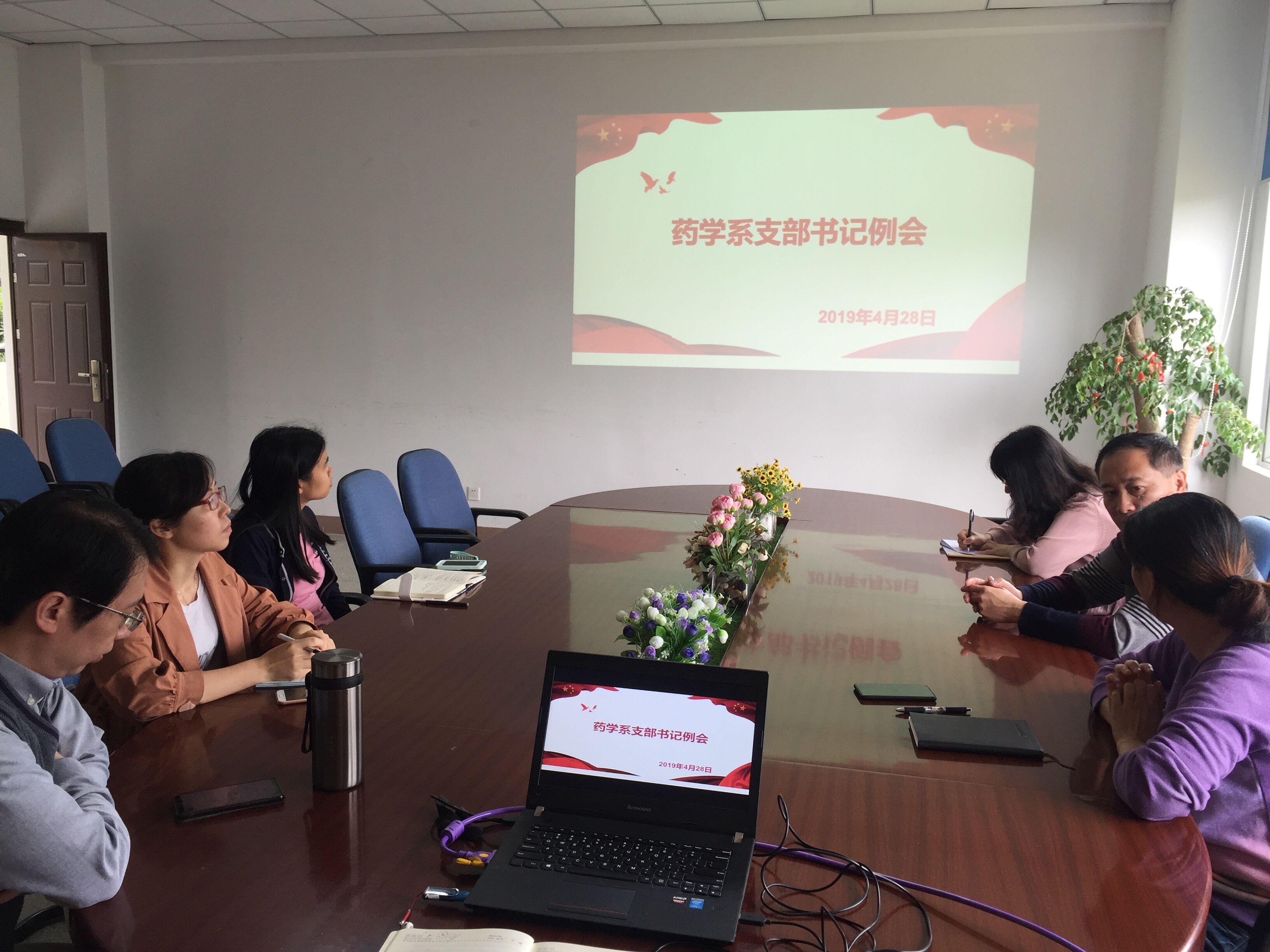 4月28日,药学系党总支在系部会议室召开4月份支部书记例会,会议由党总支郑力宏书记主持。