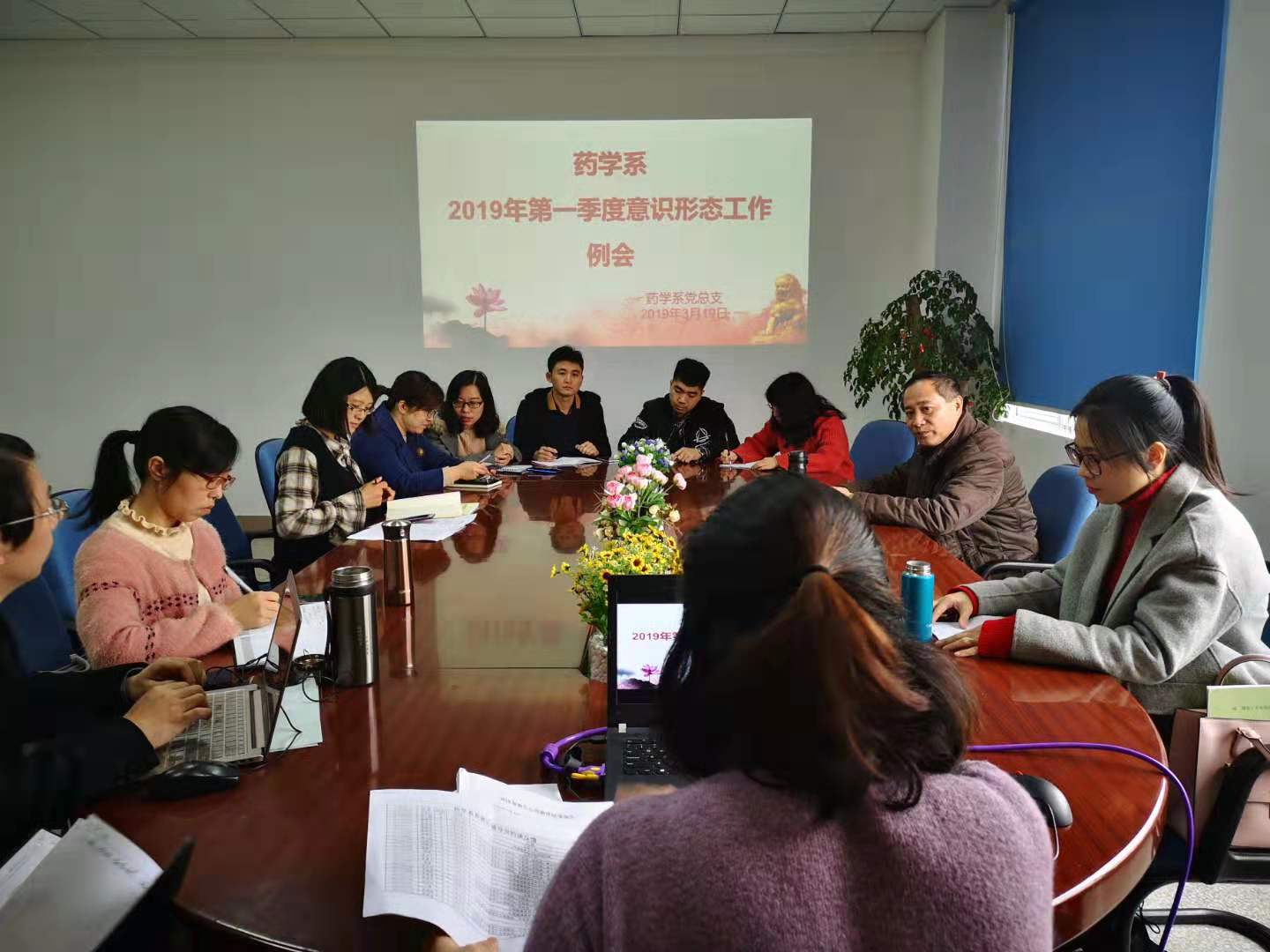 年第一季度意识形态工作会议,会议由党总支书记郑力宏主持,总支委员和辅导员参加了会议。