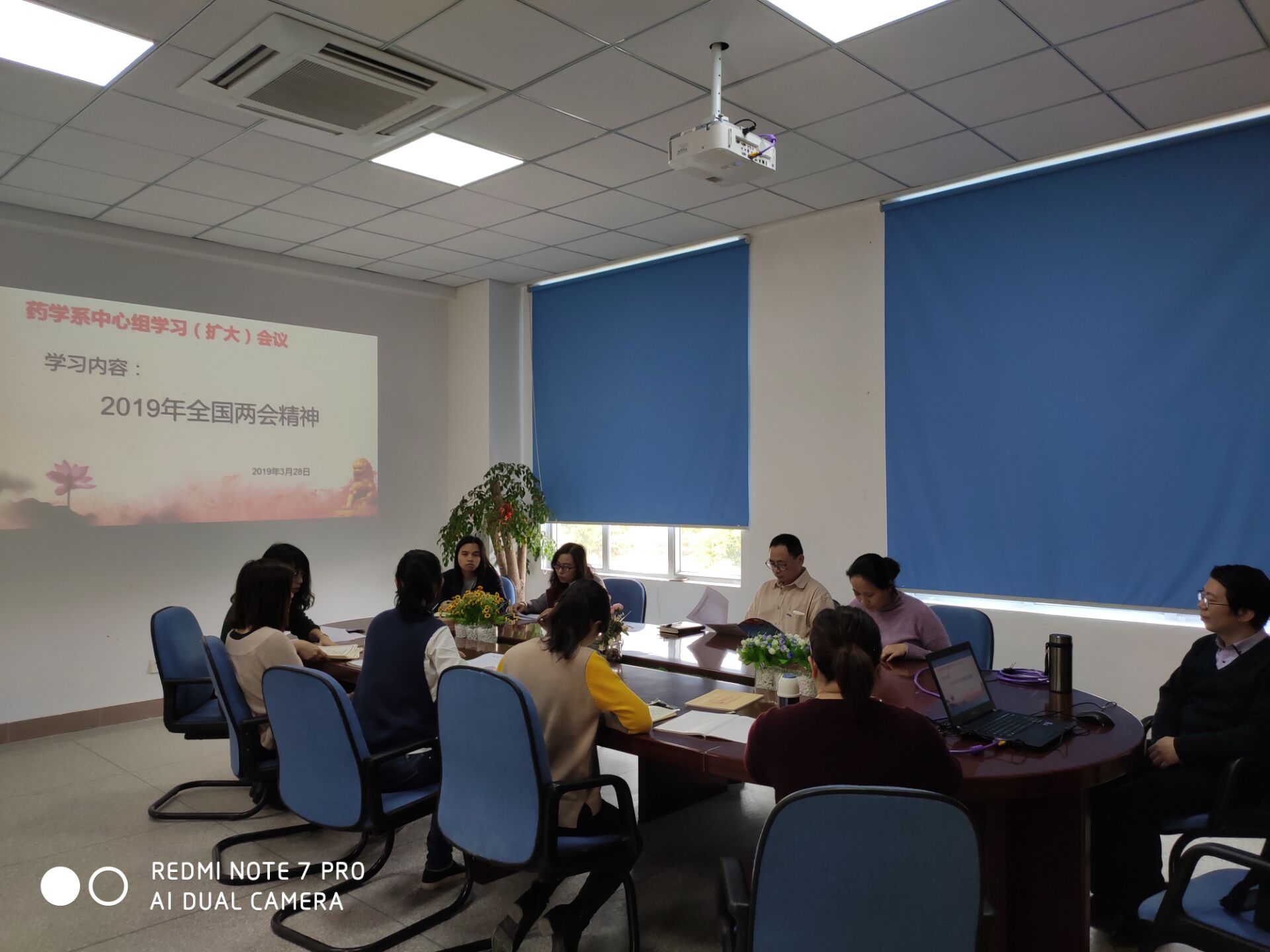 3月28日, 药学系召开中心组学习(扩大)会议,学习了2019年全国两会精神,特别是关于教育方面最新的精神。系部领导、总支委员、支部书记及团总支书记等参加了本次学习。