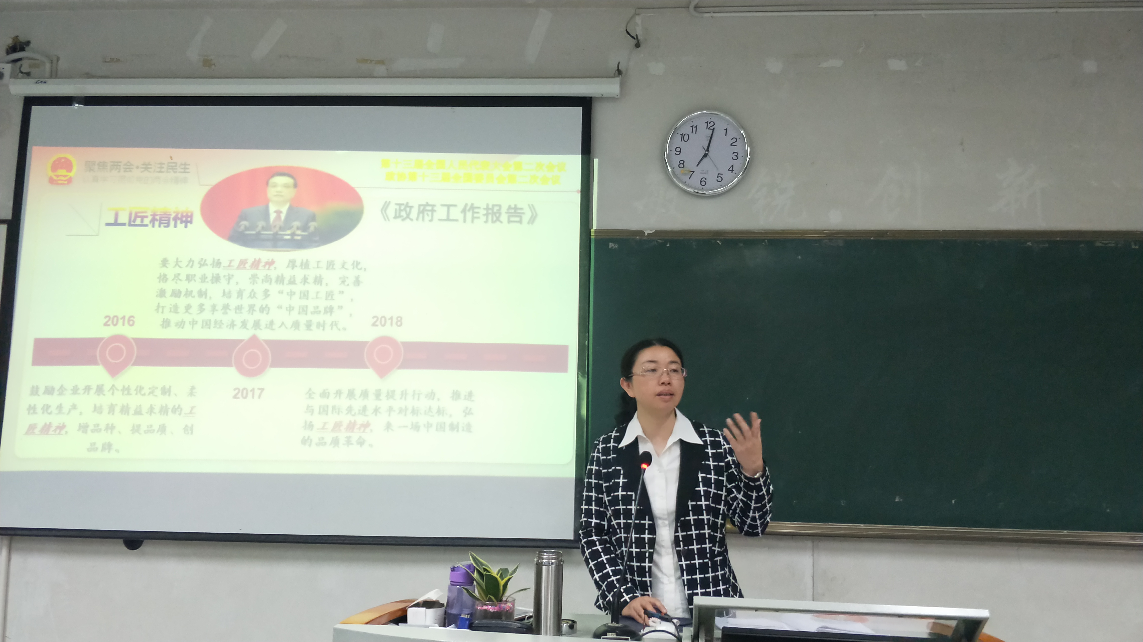 黄铭珊副院长以“什么是两会”为开端,分别从两会概况、两会看点、政府工作报告主要内容与特点、热点政策解读等方面,多角度地介绍了2019全国两会的主要议程和内容,并结合当下世情国情深入阐释了两会精神的深刻内涵,让同学们对两会精神有了一个全面准确的理解和把握。与此同时结合学院实际,详细阐述工匠精神内涵,并结合习近平总书记在改革开放40周年大会的金句:“伟大梦想不是等得来、喊得来的,而是拼出来、干出来的”,与师生共勉。最后,黄铭珊副院长对同学们提出三点要求,一是要精于学业,掌握专业医学技能;二是要勤于锤炼,发扬新时代工匠精神;三是要勇于担当,焕发青年绚丽光彩。她希望同学们瞩目全国两会,聚力逐梦,聆听为未来中国发展共谋图强的“两会好声音”,凝聚同心筑梦的精神力量,在新征程上向着美好的梦想不断奋进。