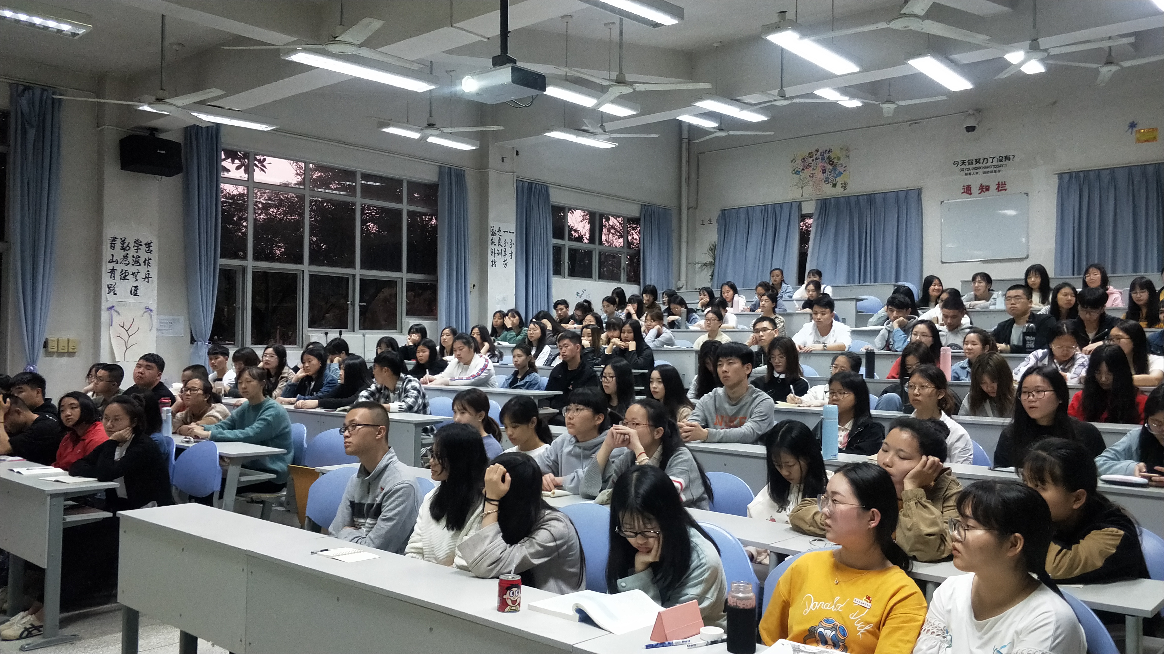 为深入学习2019年全国两会精神,把握党和国家的最新政策走向,引导学生自觉树立“有梦想、有本领、有担当”的青年学子形象,2019年4月10日,学院黄铭珊副院长走进药学系,以《聚焦全国两会》为主题,于药一阶为2018级学生讲授形势与政策课。药学系18级100余名学生到场聆听。