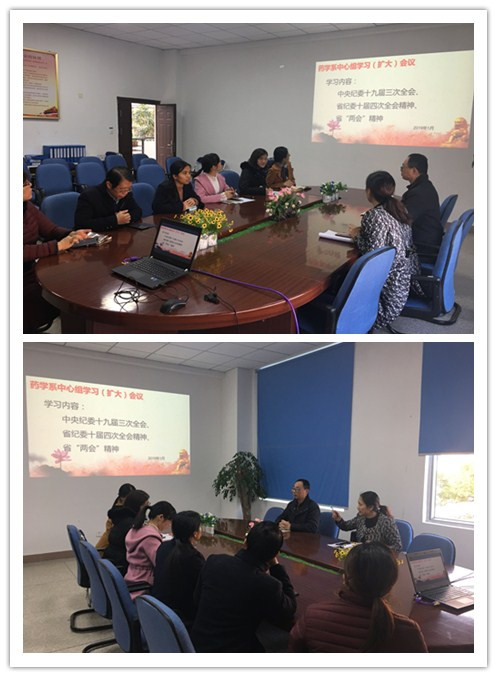 日,药学系在系部会议室召开中心组学习(扩大)会议,专题学习十九届中央纪委三次全会、省纪委十届四次全会精神、省两会精神