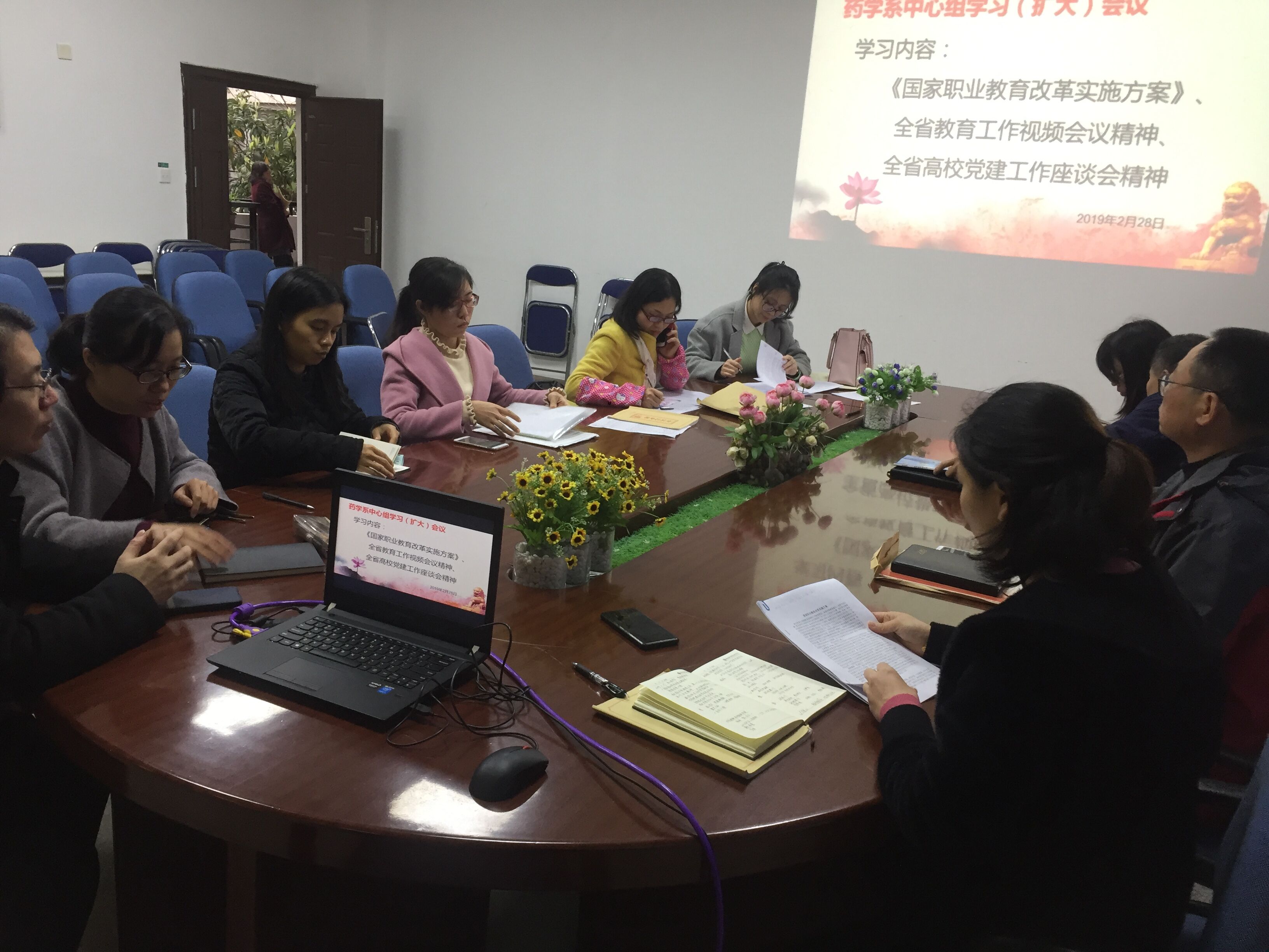 2月28日,药学系组织中心组学习(扩大)会,传达学习全省教育大会、全省高校党建工作座谈会精神,专题学习《国家职业教育改革实施方案》。学习会由总支书记郑力宏主持,班子成员、总支委员、支部书记及团总支书记参加了此次学习。