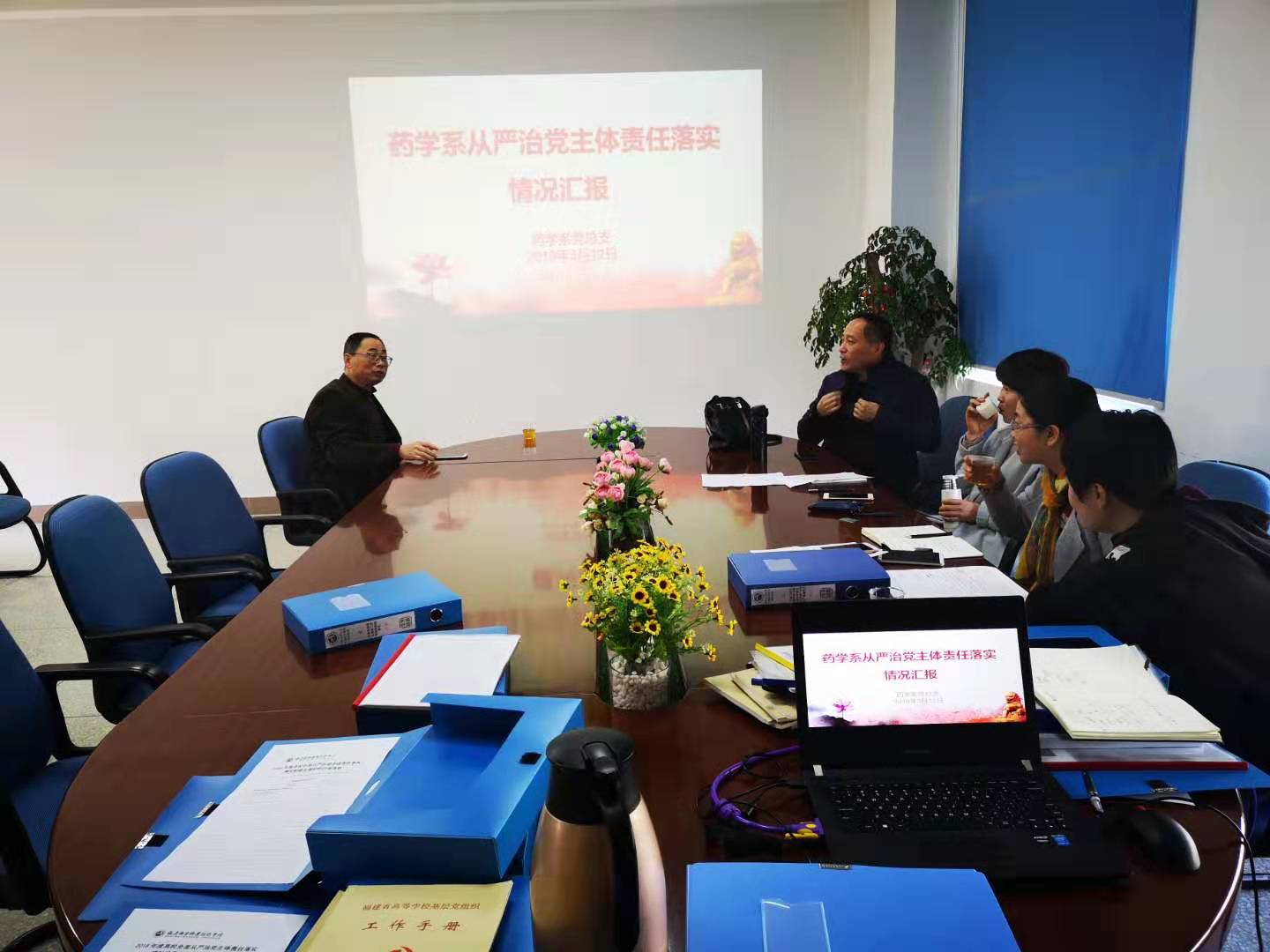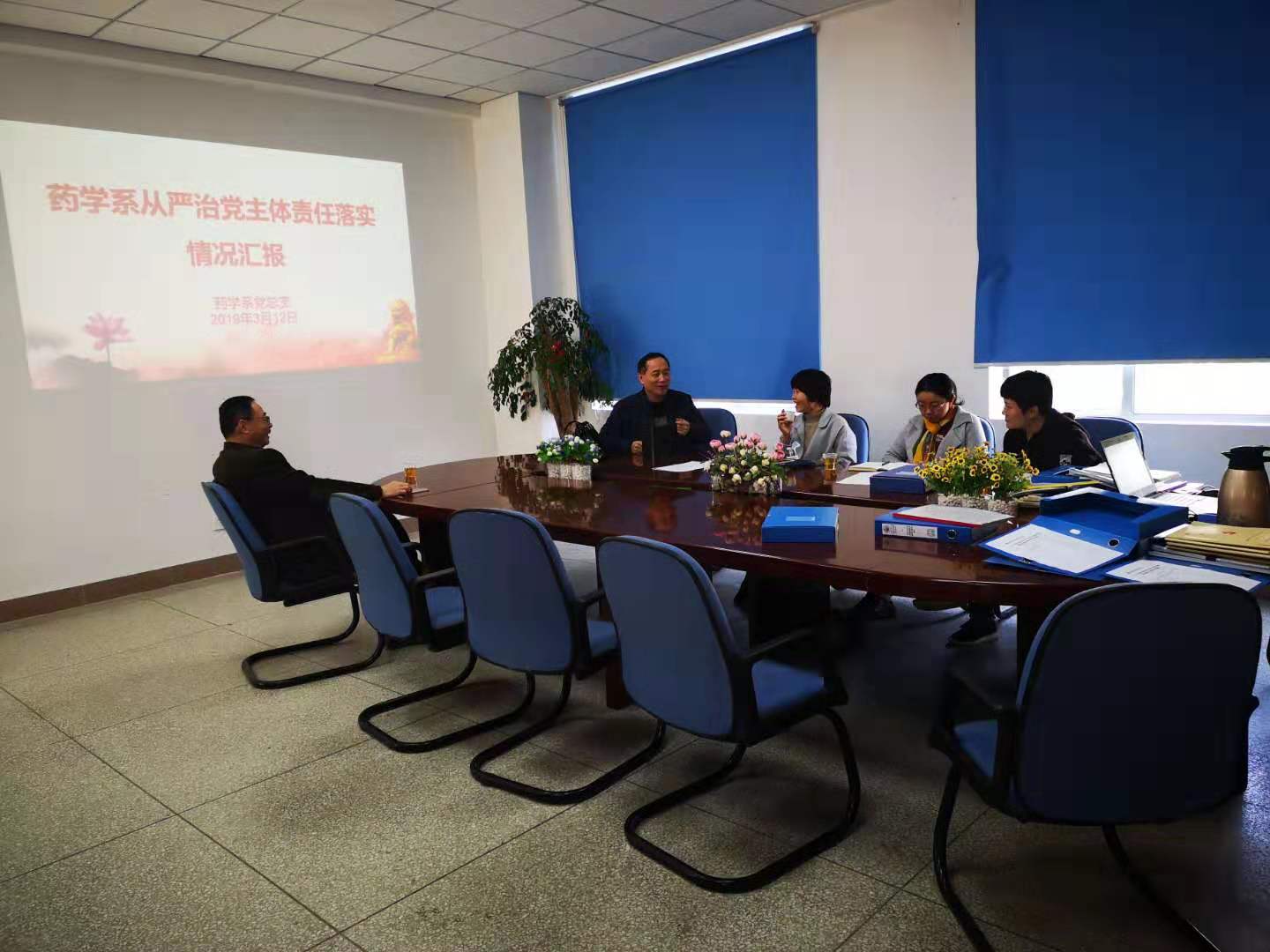 3月12日上午,学院黄铭珊副院长、党工部黄小芳科长带领督查小组莅临药学系,对药学系2018年度全面从严治党主体责任落实情况进行专项检查。
