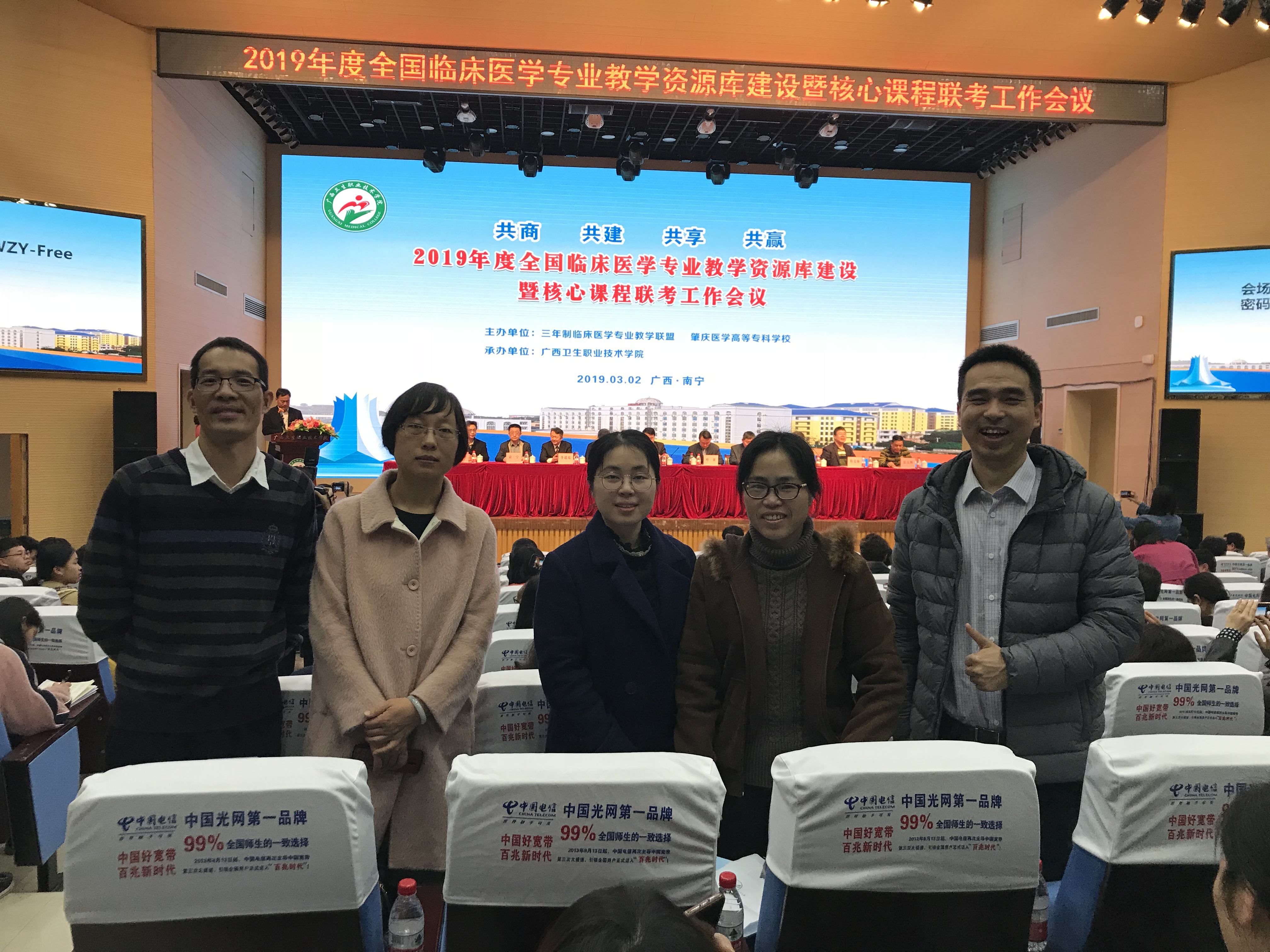 3月2日,全国临床医学专业教学资源库建设暨核心课程联考工作会议在广西卫生职业技术学院举行,我院由基础部阮秋容主任带队共5名教师参会学习。我系王金海老师作为临床专业核心课程药理学课程代表教师参会。