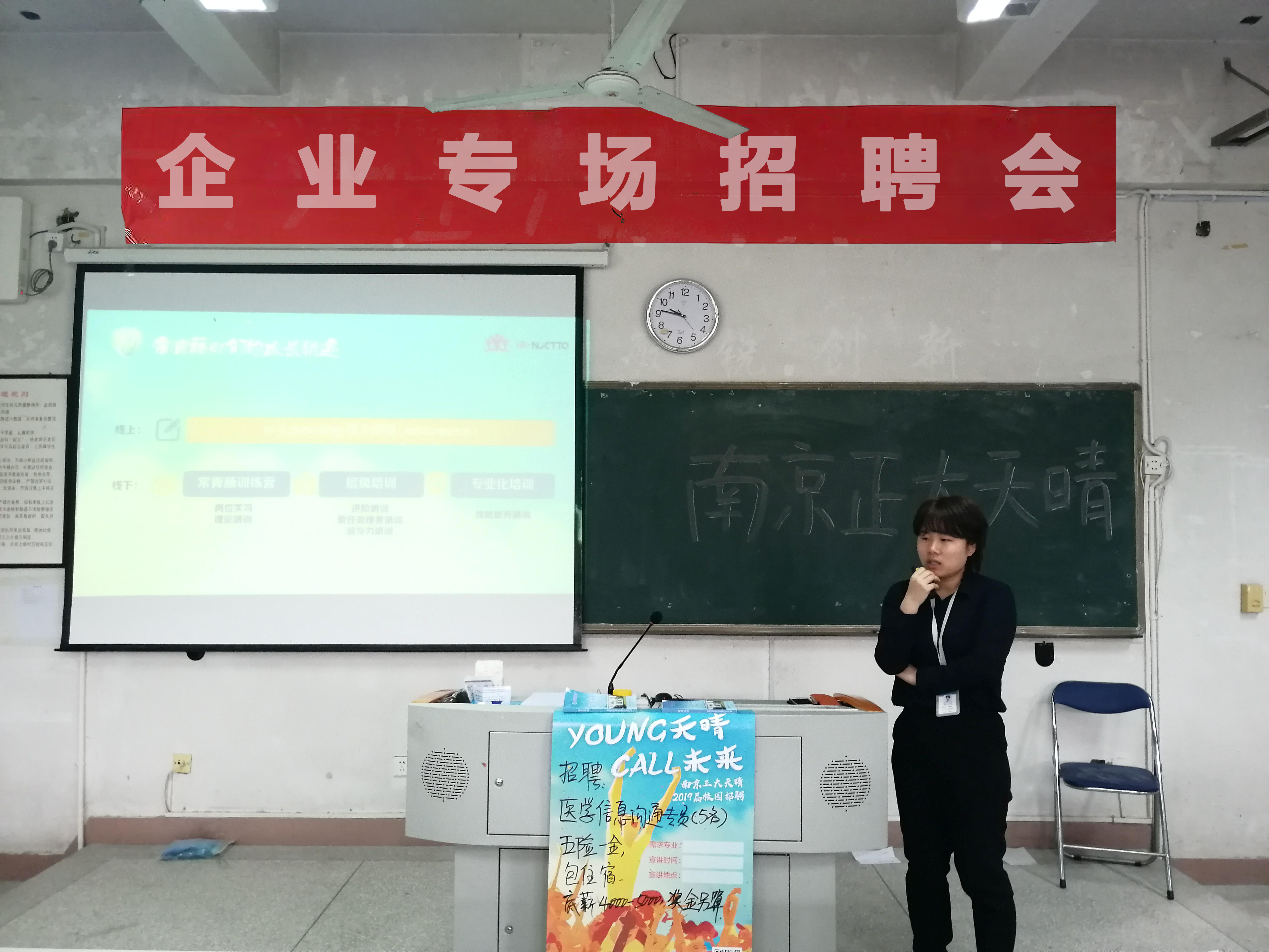 招聘会现场,各公司代表通过宣传资料、PPT介绍、现场互动交流等方式向学生们介绍了公司的基本情况、企业文化、团建活动,岗位需求、行业的发展以及公司未来的发展前景等方面,同时耐心讲解初入企业时需要学习和掌握的知识、薪资待遇等问题,引起了大家浓厚的兴趣。此次专场招聘会为广大毕业生提供的岗位有医学信息沟通专员、学术推广专员、人事行政专员等。学生们热情高涨,积极发问,各公司代表一一做了详细解答。招聘会现场在企业与学生们的互动活动中达到高潮。